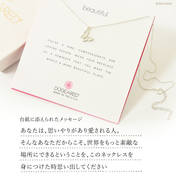 身につければ「願いが叶う」と世界から注目を集めるアクセサリーブランド Dogeared-ドギャード-から、「Beautiful」と名付けられた銀色の小さな蝶々をモチーフとしたシルバーネックレスが届きました。