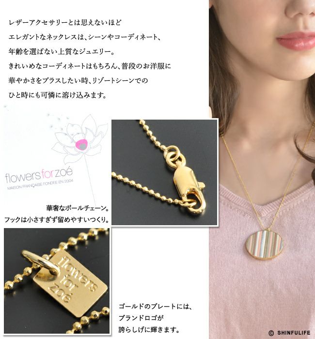 18K ゴールド コーティング レザープレート ネックレス フランス製