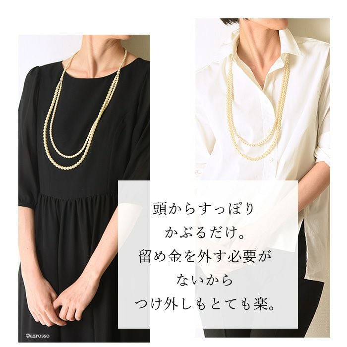 フランス製 2連パール ロングネックレス 真珠 80cm