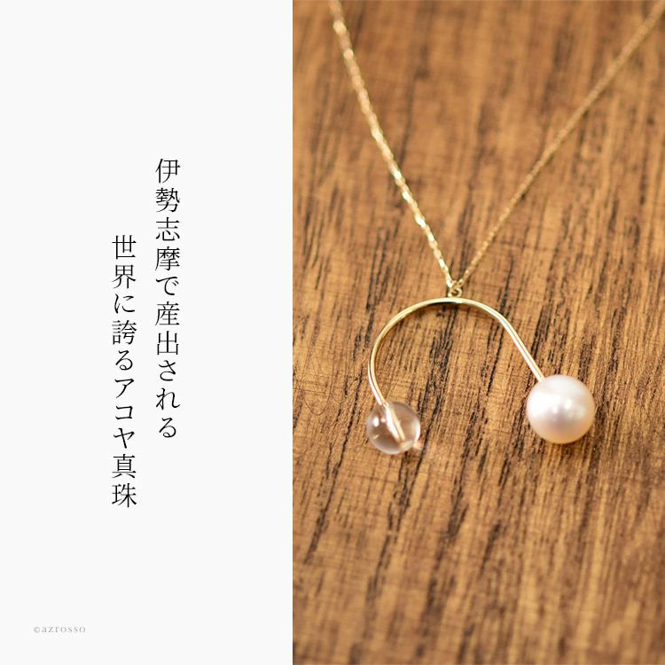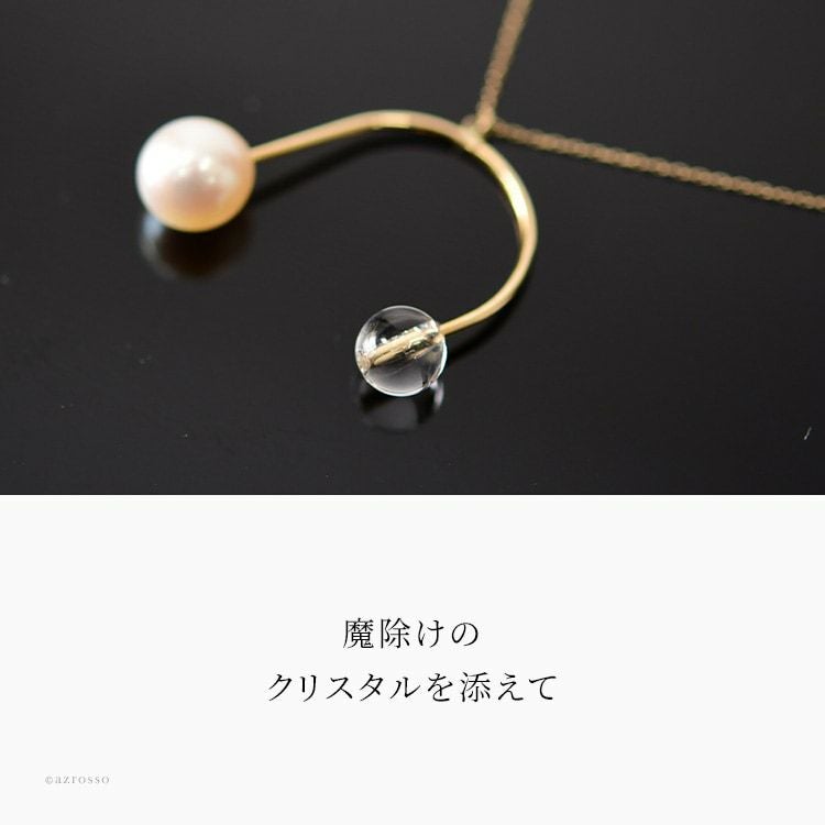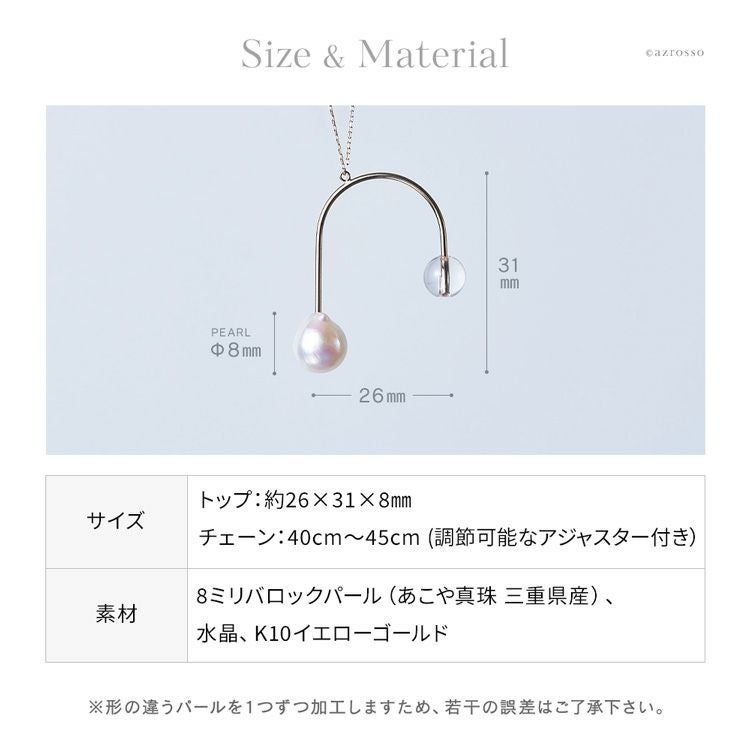 日本製 バロックパール ネックレス 8mm クリスタル 水晶 K10イエローゴールド Succession シリーズ アコヤ真珠 カジュアル ペンダント 普段使い ゴールド