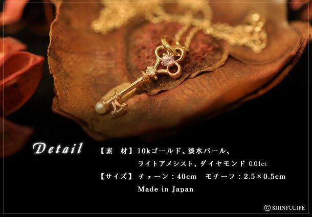 幸福の扉を開く鍵モチーフネックレス/ 3つの宝石をあしらったアンティークデザイン/華麗で繊細なジャパンジュエリー・コタラッテ・ピーポー(Cotalatte peepo) アンティークキー・ゴールドネックレス(10K) コタラッテの姉妹ブランド Cotalatte peepo(コタラッテ・ピーポー) 心を開き希望へ導くキーモチーフデザインネックレス/ゴールド/ピンクゴールド/イエローゴールド/ペンダント/鍵/ダイヤ/パール/アメジスト