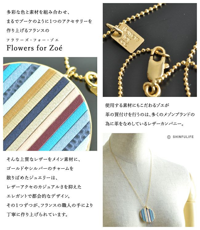 フラワーズフォーゾエ flowers for Zoe 18K ゴールド コーティング レザープレート ネックレス フランス製