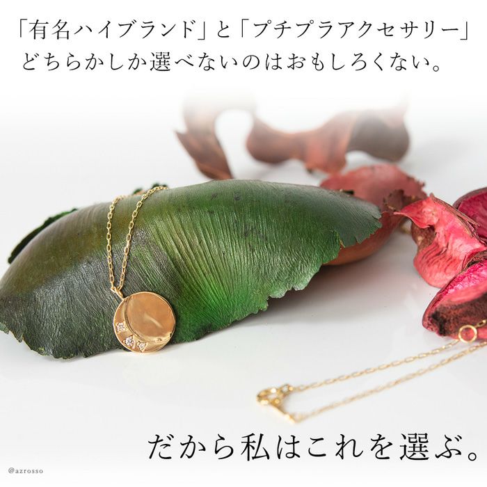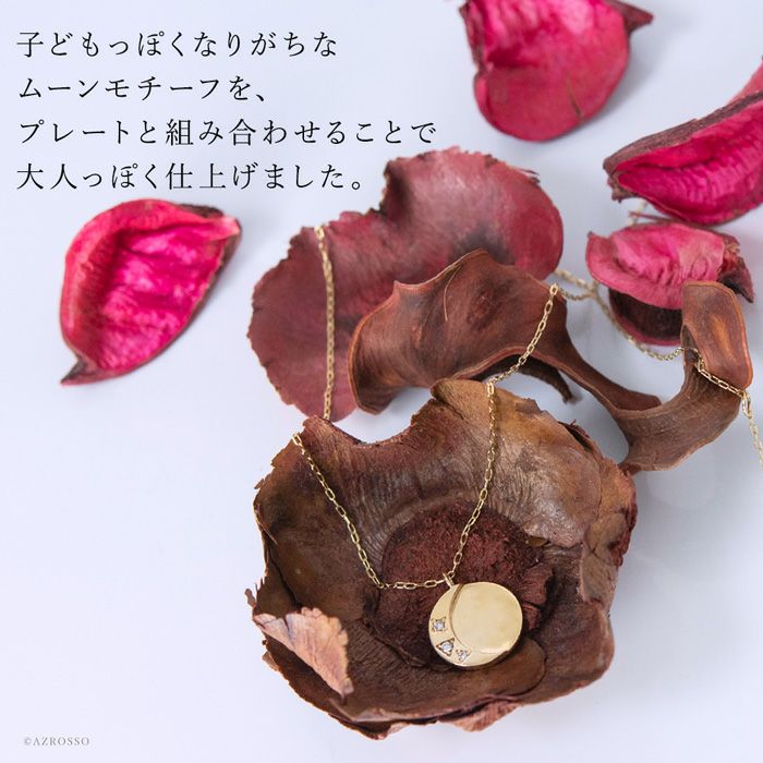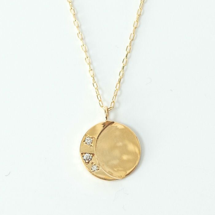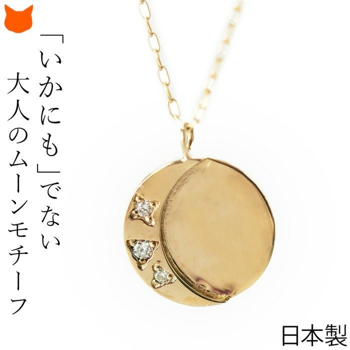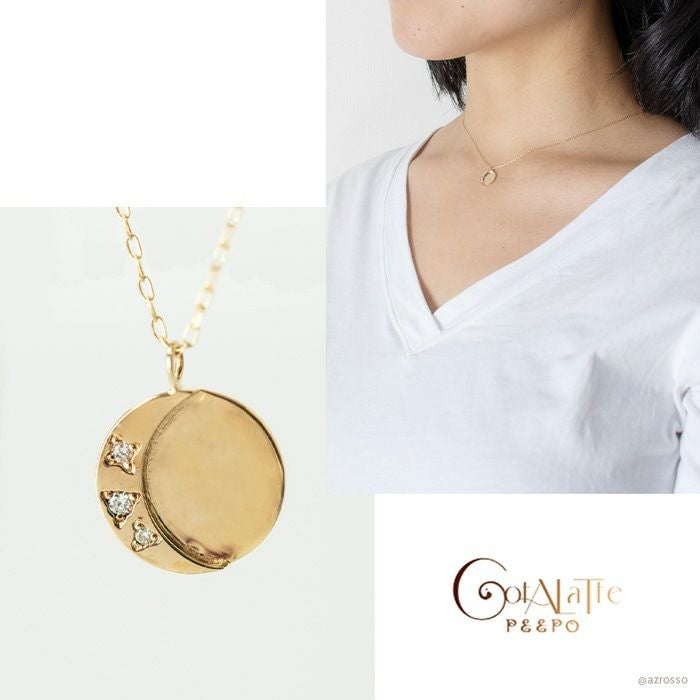 日本の一流職人の手から生まれる飽きない高級感。ラウンドプレートにさりげなく三日月とダイヤモンドが輝くCotalatte Peepo(コタラッテピーポー)のレディースネックレス 三日月 ゴールド ネックレス ムーンモチーフ ダイヤモンド 日本製 アクセサリー コタラッテピーポー レディース