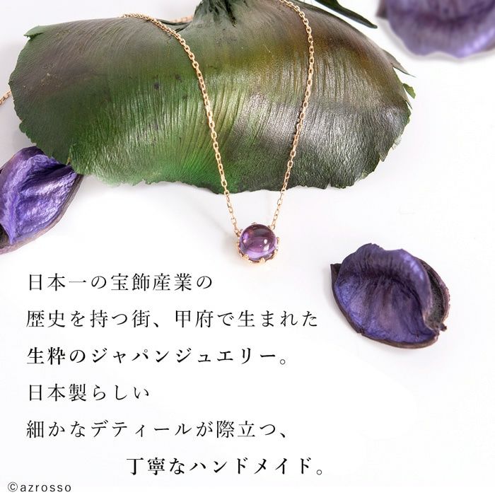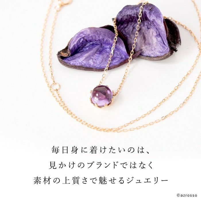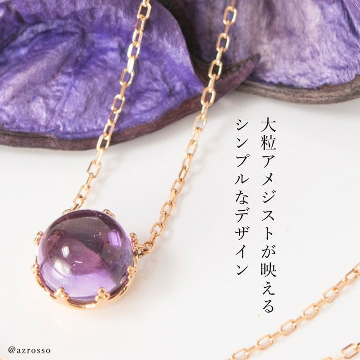 胸元を美しく彩るパープルの一粒アメジストネックレスを日本の一流職人の手から。K18ゴールドアクセサリーを中心に取り揃えるブランドCotalatte(コタラッテ) 一粒 アメジスト ネックレス K18 ピンクゴールド 大粒 天然石 日本製 アクセサリー コタラッテ レディース