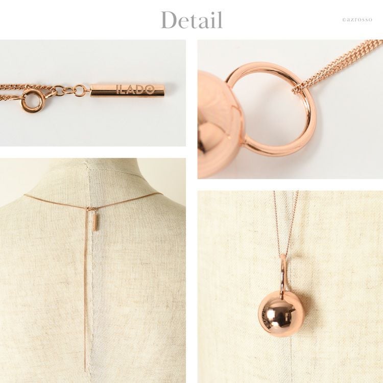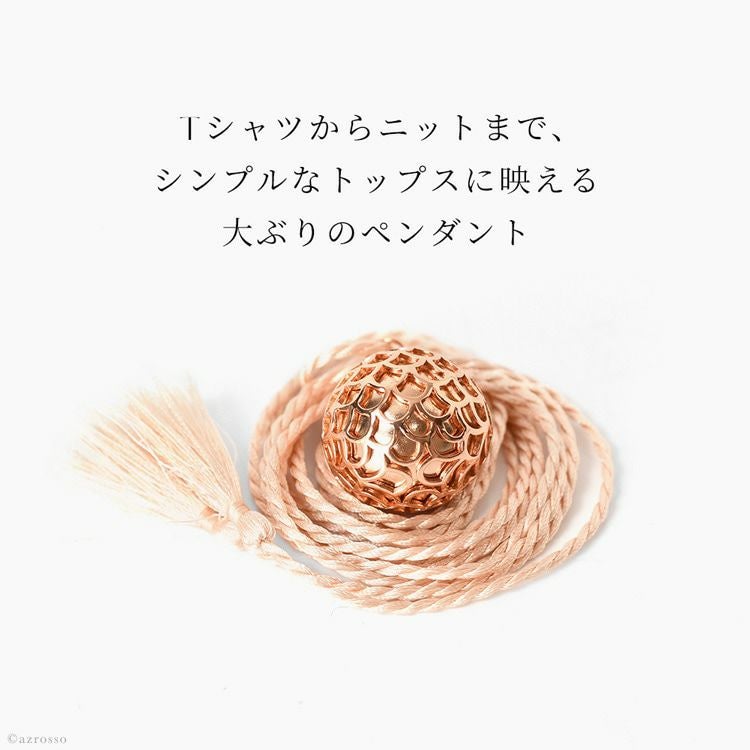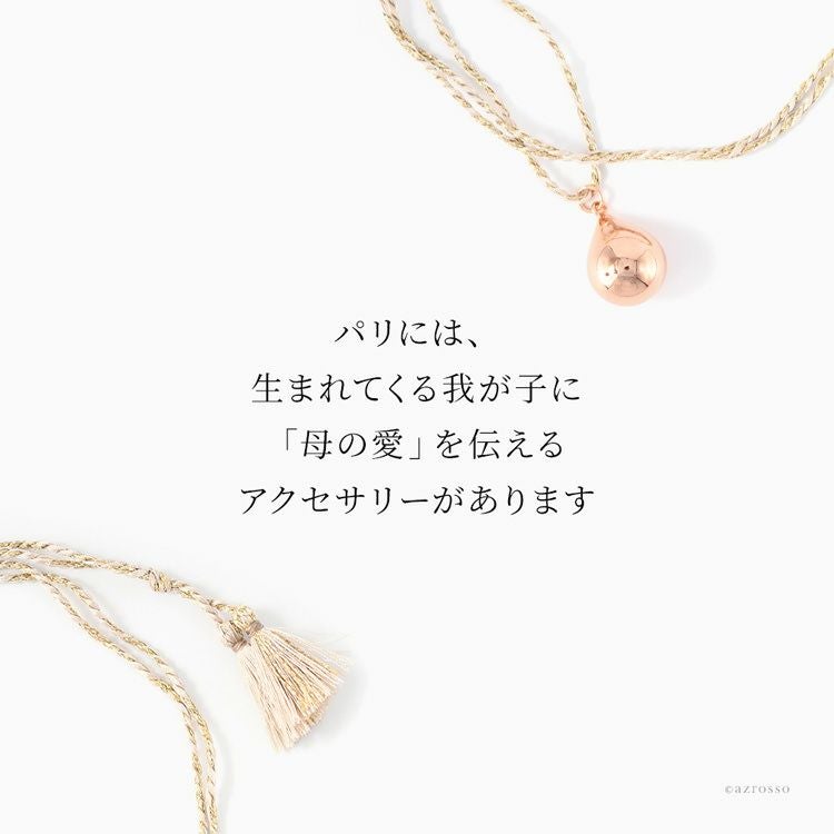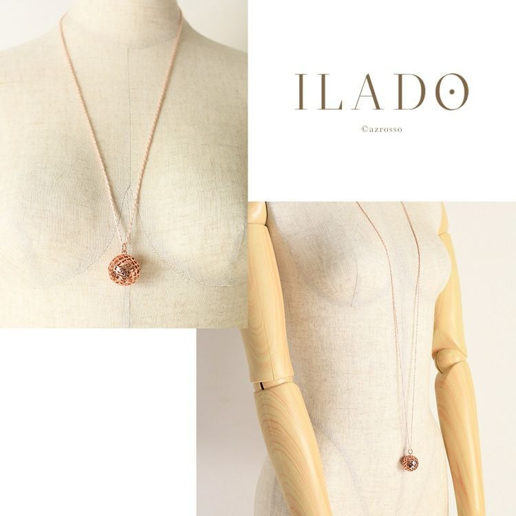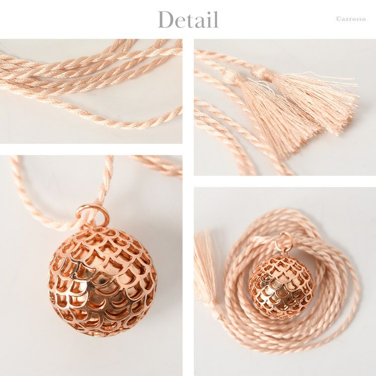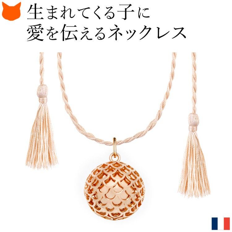 揺れるたびに澄んだ音色で癒されるパリ発ジュエリーブランド ILADO(イラド)のピンクゴールドネックレス。魔よけや厄よけの意味を持つ鱗(うろこ)モチーフのアクセサリーはプレゼントにも ロング ネックレス 大ぶり ペンダント ピンク ゴールド アクセサリー リラックス アイテム 癒し グッズ ヒーリング フランス お守り スピリチュアル ガムランボール ミュージック ボール シルク タッセル レディース