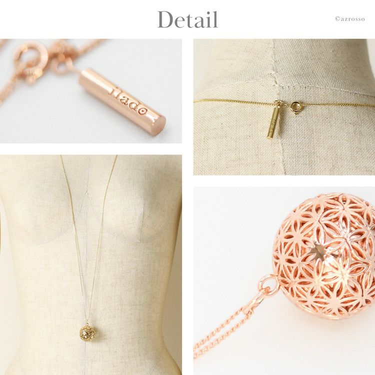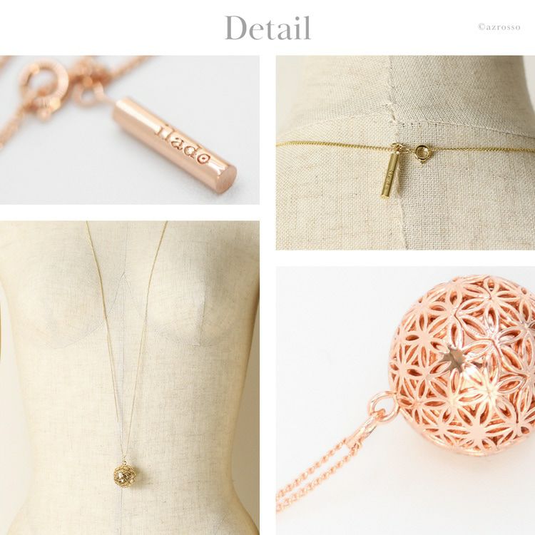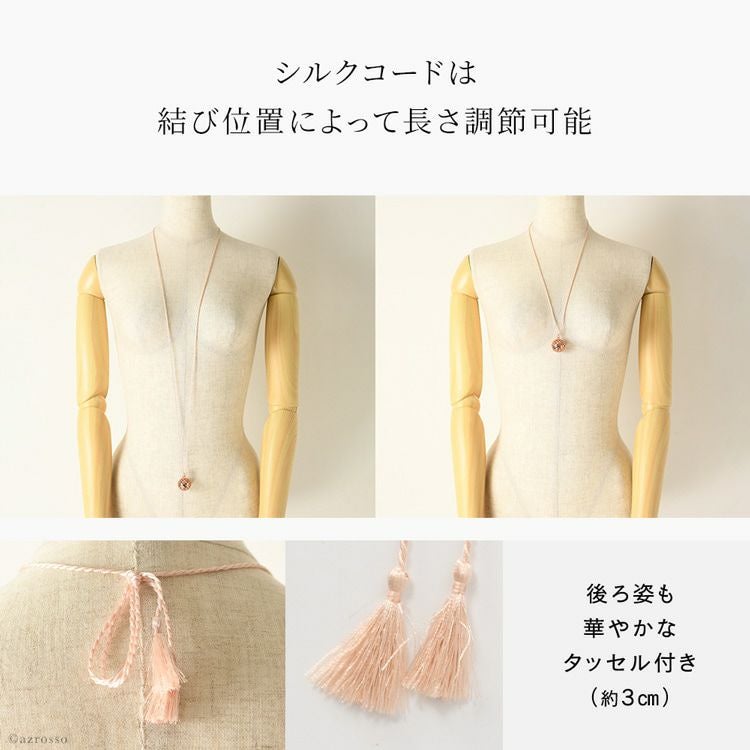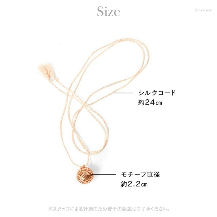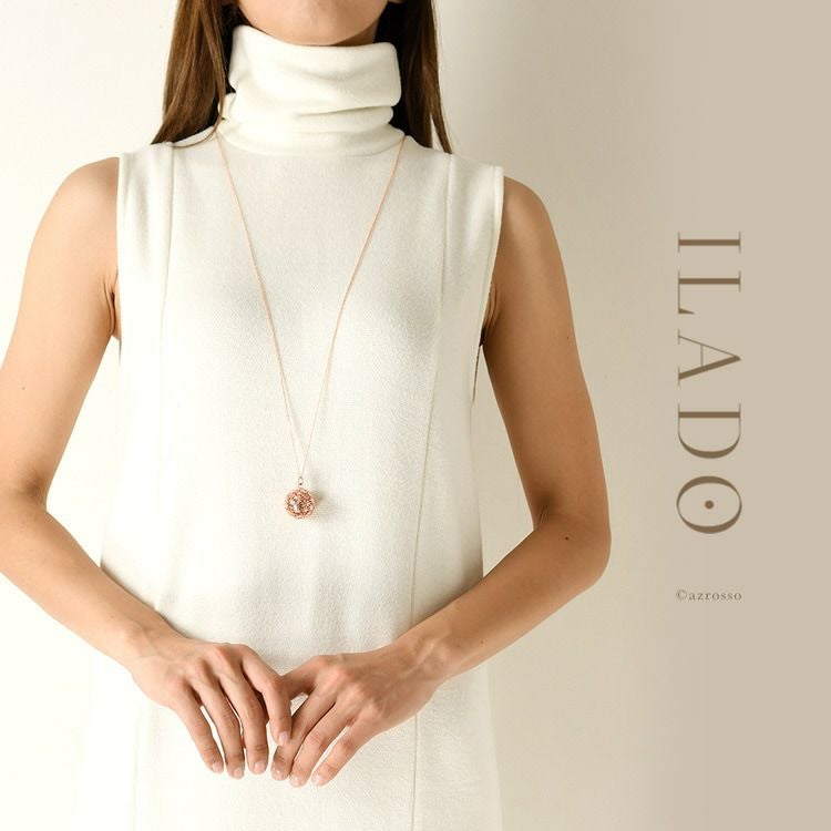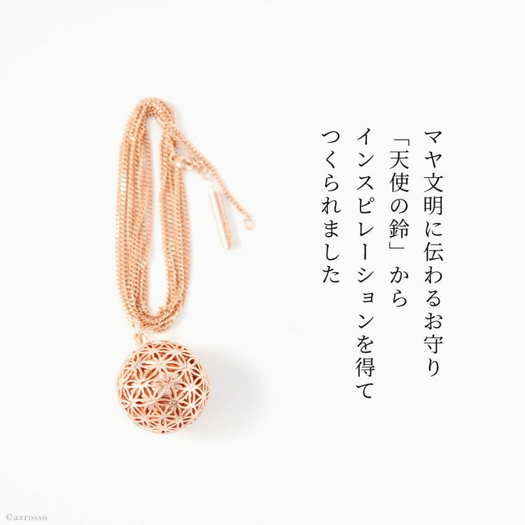 揺れるたびに澄んだ音色で癒されるパリ発ジュエリーブランド ILADO(イラド)のピンクゴールドネックレス。魔よけや厄よけの意味を持つ鱗(うろこ)モチーフのアクセサリーはプレゼントにも ロング ネックレス 大ぶり ペンダント ピンク ゴールド アクセサリー リラックス アイテム 癒し グッズ ヒーリング フランス お守り スピリチュアル ガムランボール ミュージック ボール シルク タッセル レディース