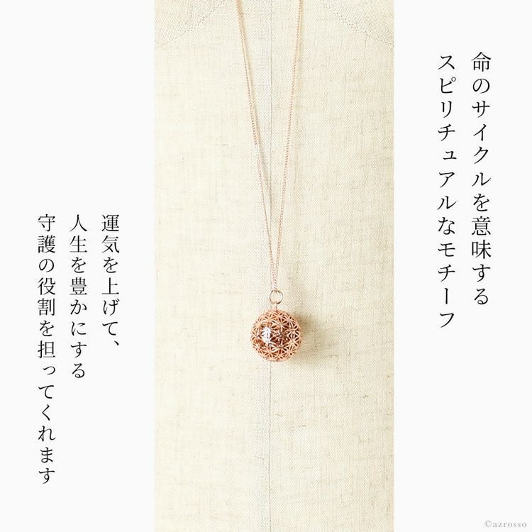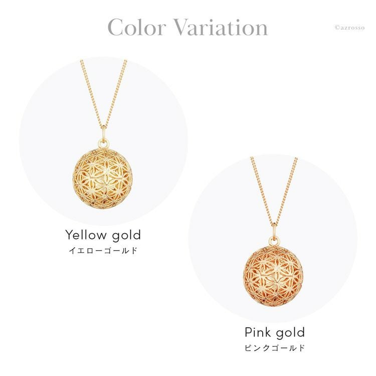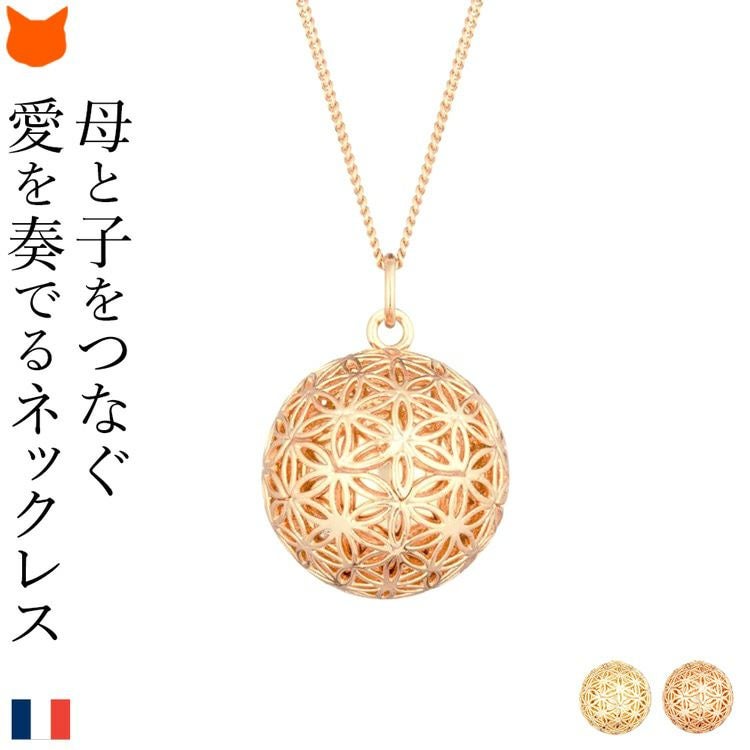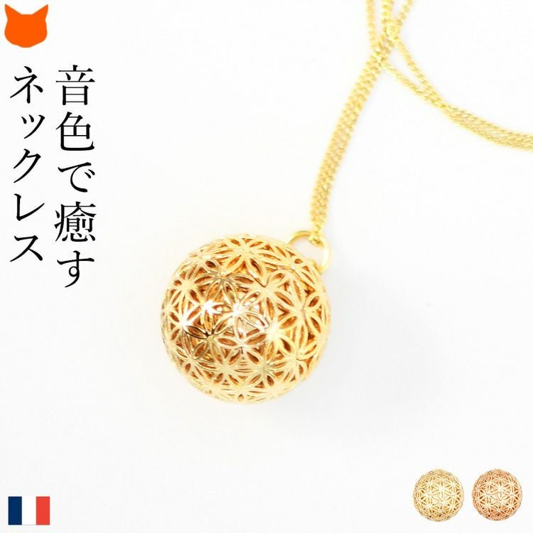 揺れるたびに澄んだ音色に癒されるパリILADO(イラド)のネックレス。運気を上げる神聖幾何学模様のアクセサリーはプレゼントにもおすすめ。ゴールド、ピンクゴールドの2色をご用意 ピンク ゴールド ネックレス 長め ペンダント ロング 大ぶり フラワー オブ ライフ 神聖 幾何学模様 リラックス 癒し グッズ ヒーリング アクセサリー フランス お守り スピリチュアル ガムランボール レディース