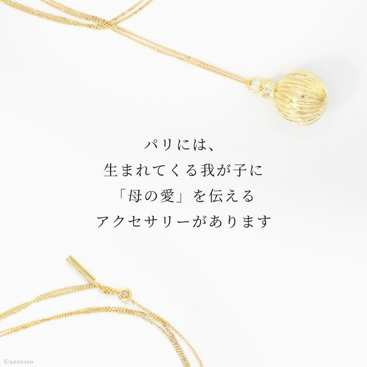 春の訪れ・再生・繁栄を象徴するザクロモチーフのマタニティーネックレス。胎教に良い神秘的な音色を奏でるフランス パリ ILADO(イラド)のアクセサリー。出産前の妊婦さんへのプレゼントに ザクロ モチーフ ネックレス マタニティ ギフト アクセサリー ゴールド ロング ペンダント リラックス アイテム フランス マタニティーネックレス 胎教 お守り おめでた 懐妊 プレゼント