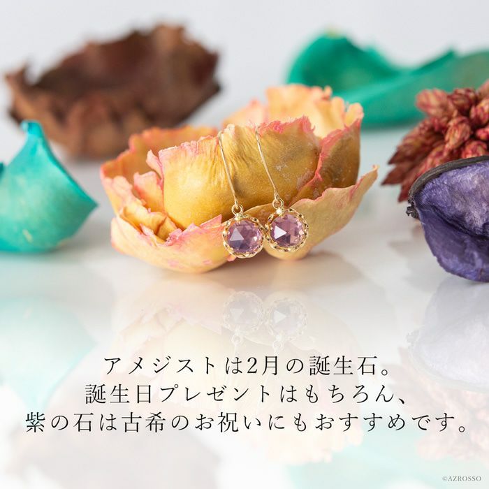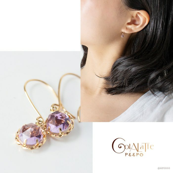 一粒 アメジスト ピアス 揺れる フックピアス 日本製 アクセサリー ゴールド コタラッテピーポー レディース
