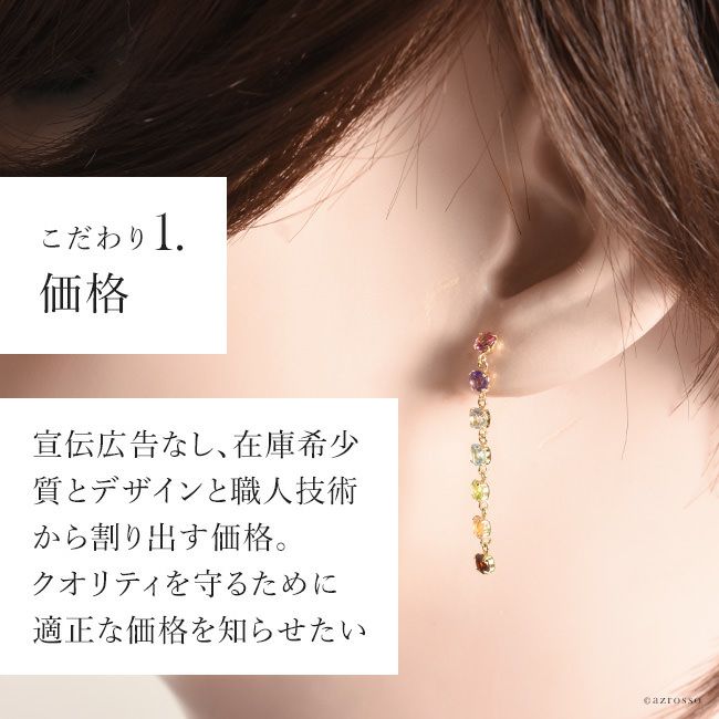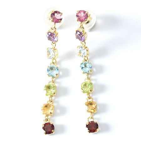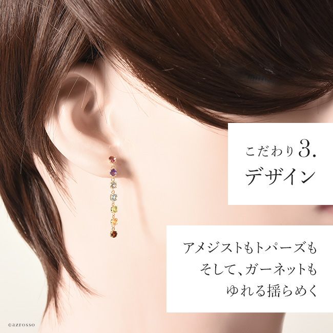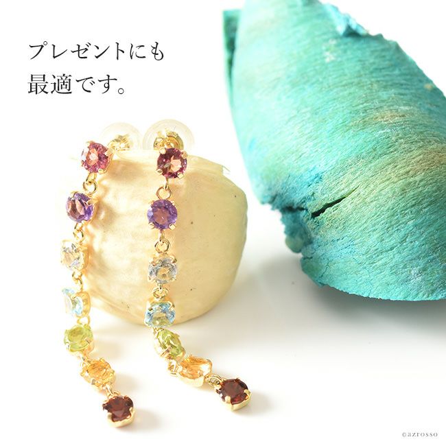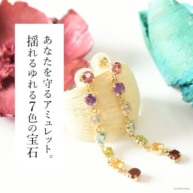 7連 アミュレット ロング ピアス 1.5ct 18k ゴールド ピンクトルマリン アメジスト アクアマリン トパーズ ペリドット シトリン ガーネット 揺れる K18YG コタラッテ 日本製 厄除け プレゼント