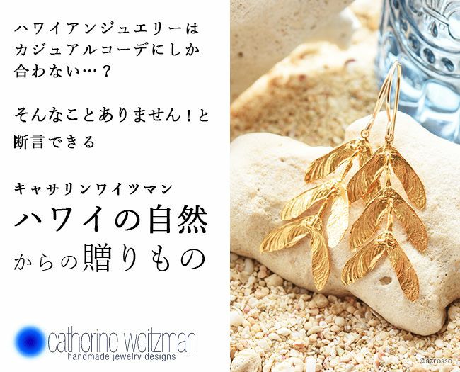「大人っぽい落ち着いた格好で身につけても、しっくり来るデザインってないの?」そんな女性の願いを叶えてくれるピアスが、ハワイアンジュエリーブランド、キャサリン・ワイツマンから届きました。