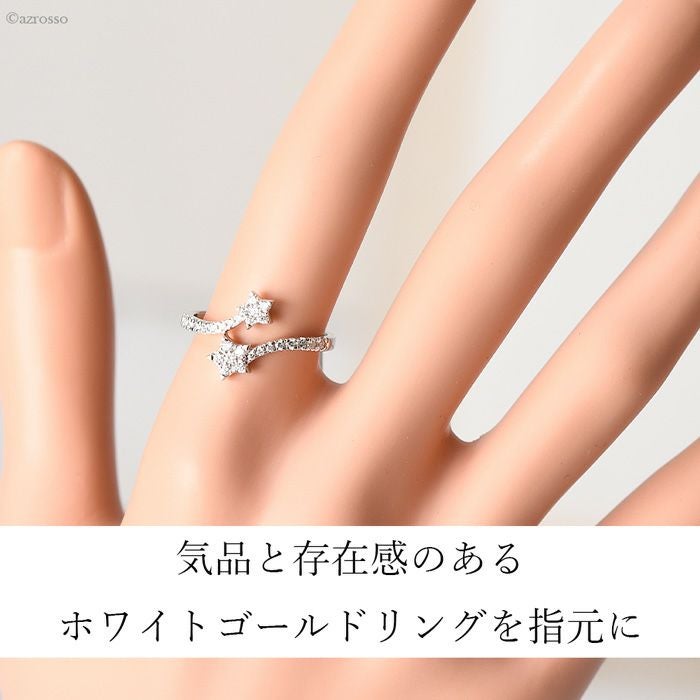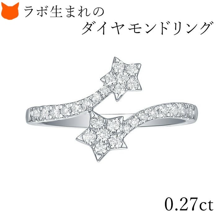 ゆるいカーブを描いたデザインが流れ星のようなスターモチーフのフォークリング。【SMILING ROCKS】 ダイヤモンド ゴールド リング 10k ホワイトゴールド 0.27カラット ラボグロウンダイヤモンド