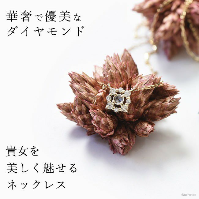 華奢で小さめな宝石ダイヤを円形(リース ラウンド)に配置した美しいジャパンブランドネックレス。ゴールドのシンプルなペンダントは普段使いは勿論 結婚式 パーティや彼女 奥さんへの 誕生日 記念日 のプレゼントに/ ダイヤモンド ネックレス サークル ゴールド 日本製 アクセサリー 小ぶり 宝石