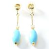 耳元で揺れるターコイズピアス。勇気をもらえるお守りピアス。日本の一流職人の手から/ ターコイズ ブルー ダイヤモンド ピアス 18k イエロー ゴールド シンプル 揺れる チェーン トルコ石 K18YG コタラッテ 日本製 プレゼント
