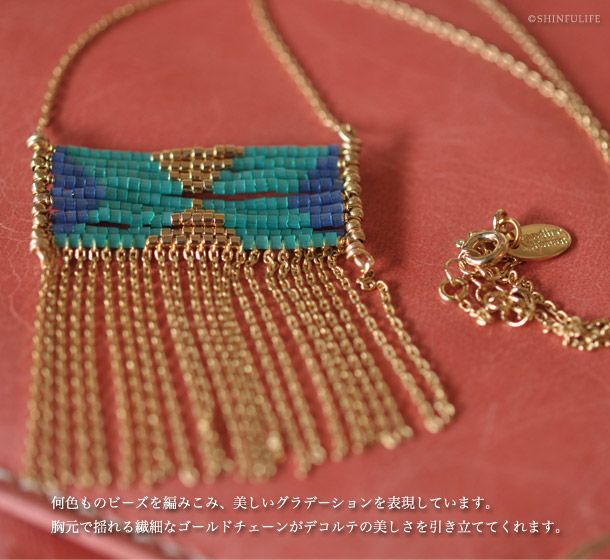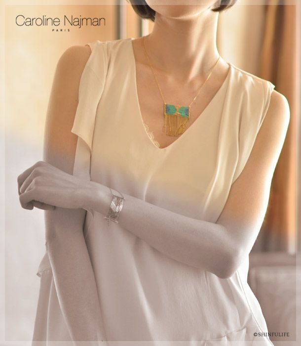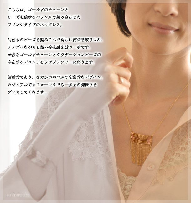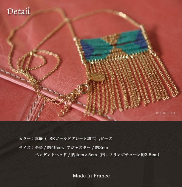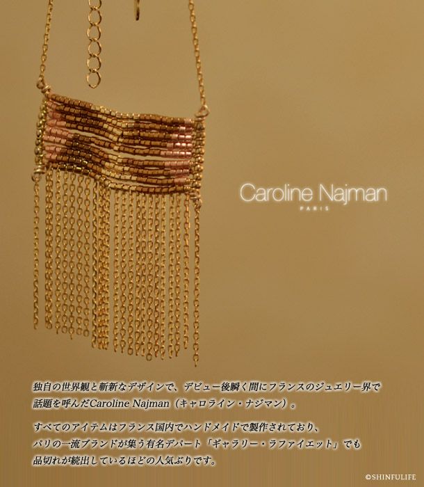 絶えず進化し続けるフランスの洗練ジュエリーブランド、キャロラインナジマン/ネックレス/チェーン/華奢/アクセサリー/ブルー/ピンク/ターコイズ/プレゼント/ブランド/ パリジェンヌを魅了する新進気鋭のアクセサリーブランド Caroline Najman(キャロライン・ナジマン) ゴールド×ビーズ フリンジ ネックレス/チェーンネックレス/アクセサリー/ジュエリー/18K/フランス/ゴールド/インポート/ロング/ターコイズ