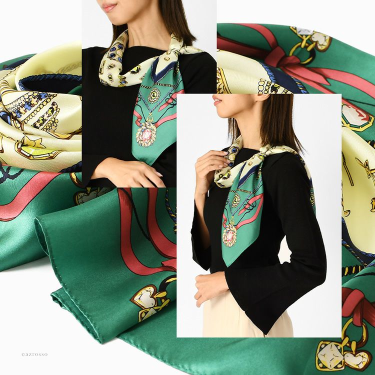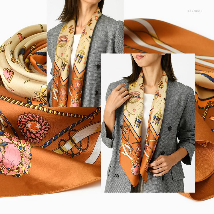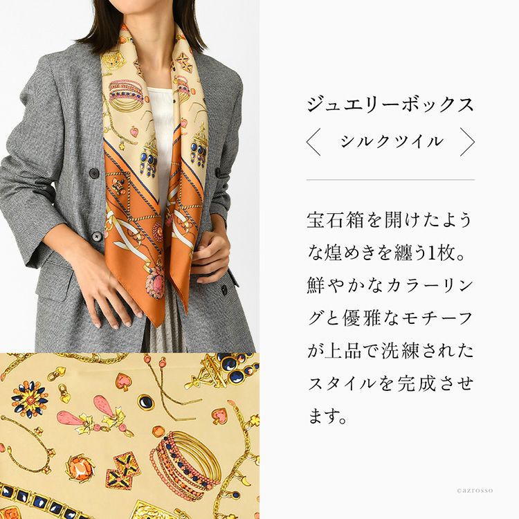 ジュエリーボックス シルク ツイル ジュエリー 宝石 柄 シルク100% 90cm×90cm 日本製 横浜スカーフ【通常ネコポス配送】