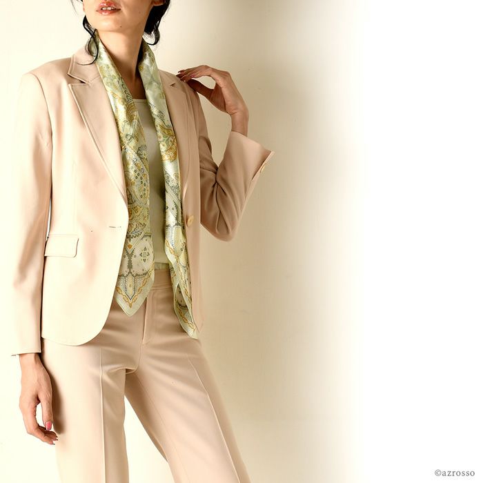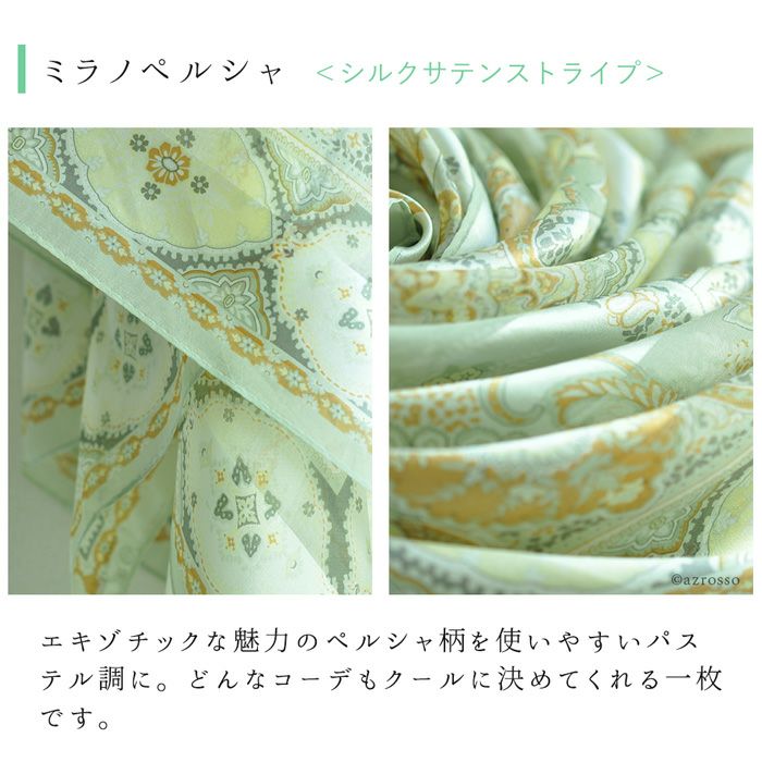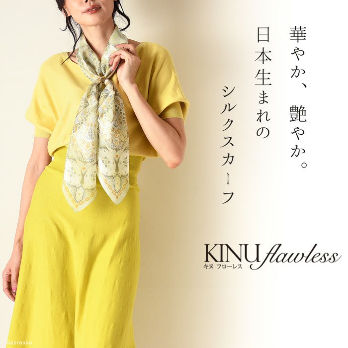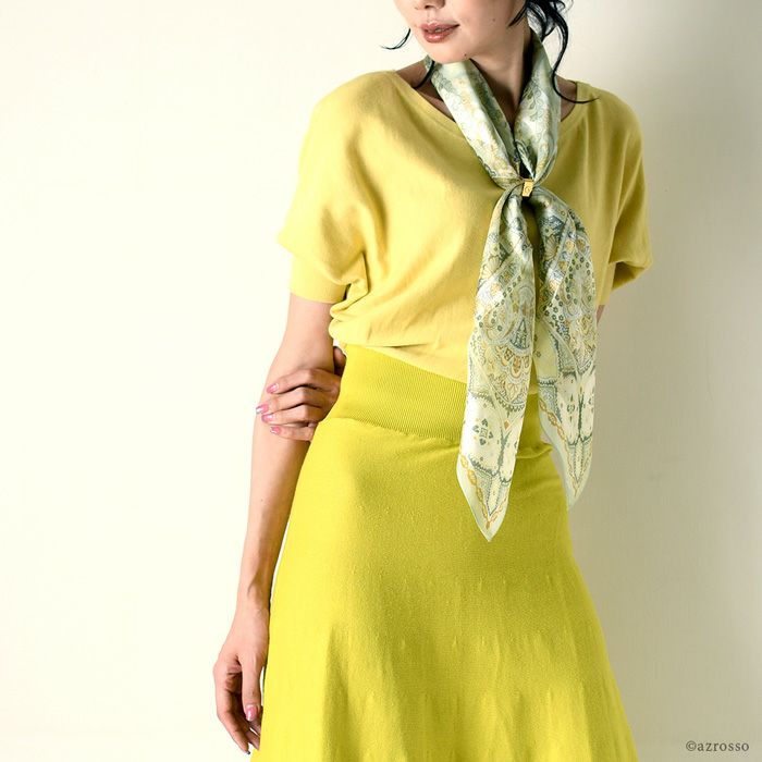 手捺染で仕上げたスカーフは肌触りと光沢を含む上質な仕上がりになります。また、裏表の区別がつきにくいところも特徴です。