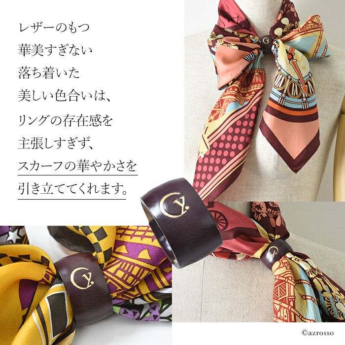 本革 スカーフリング(スカーフ留め) .Y(ドットワイ)ブランド シルクスカーフに合う上質素材 日本製