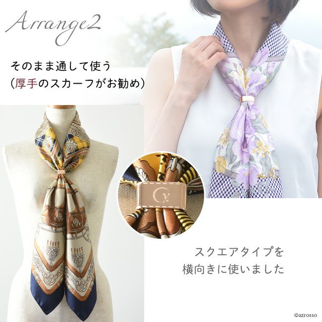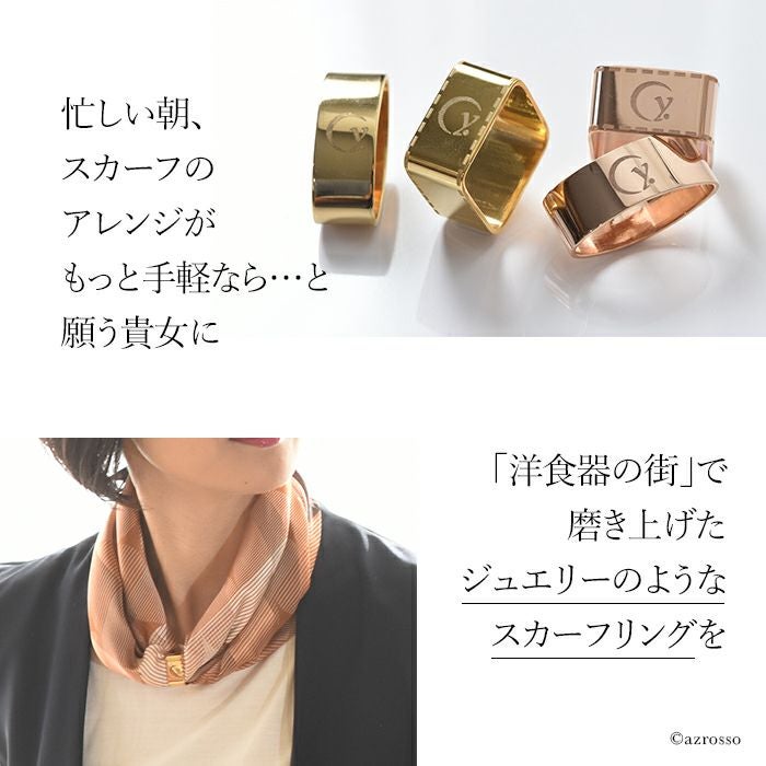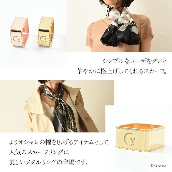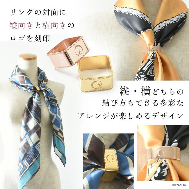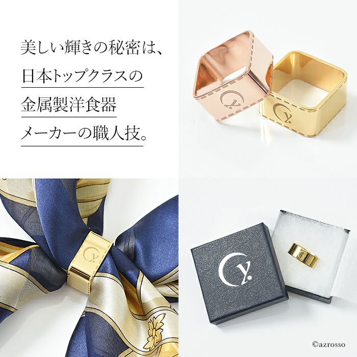 ゴールド スカーフリング 日本製 ブランド .Y ドットワイ 四角いスクエアタイプとだ円のオーバルタイプ 金属スカーフ留め