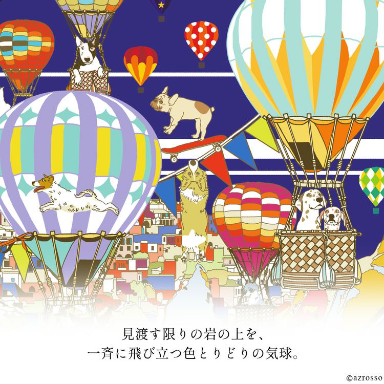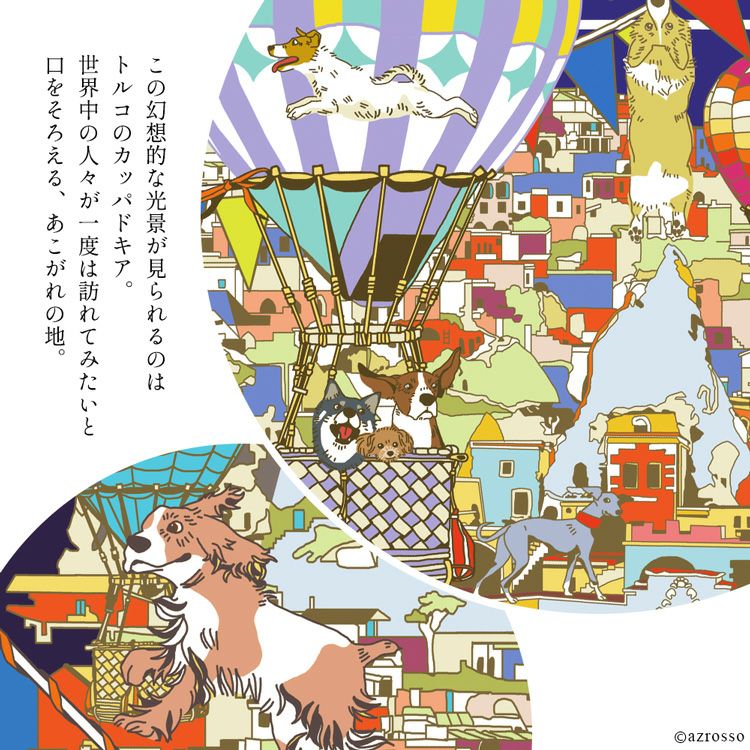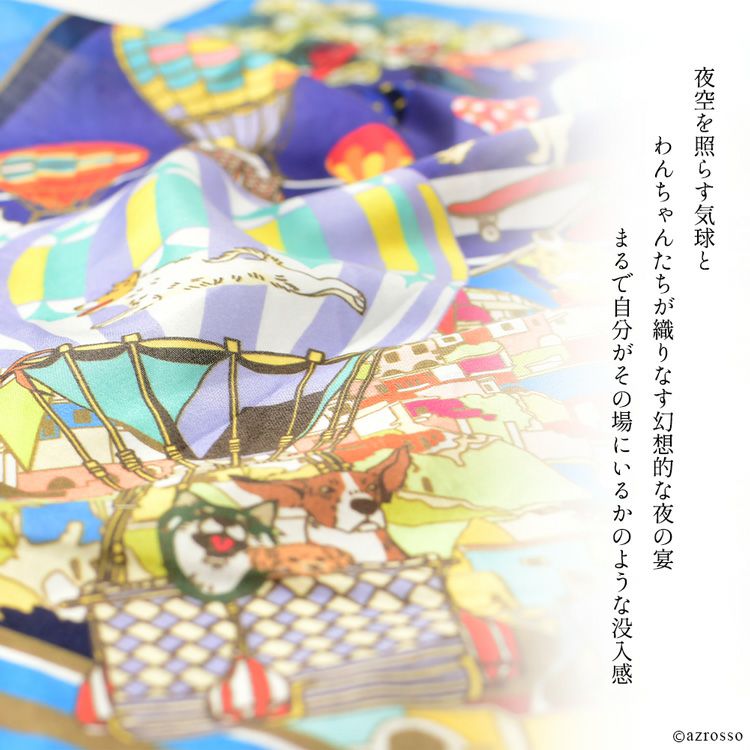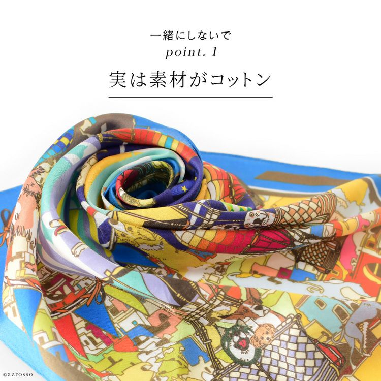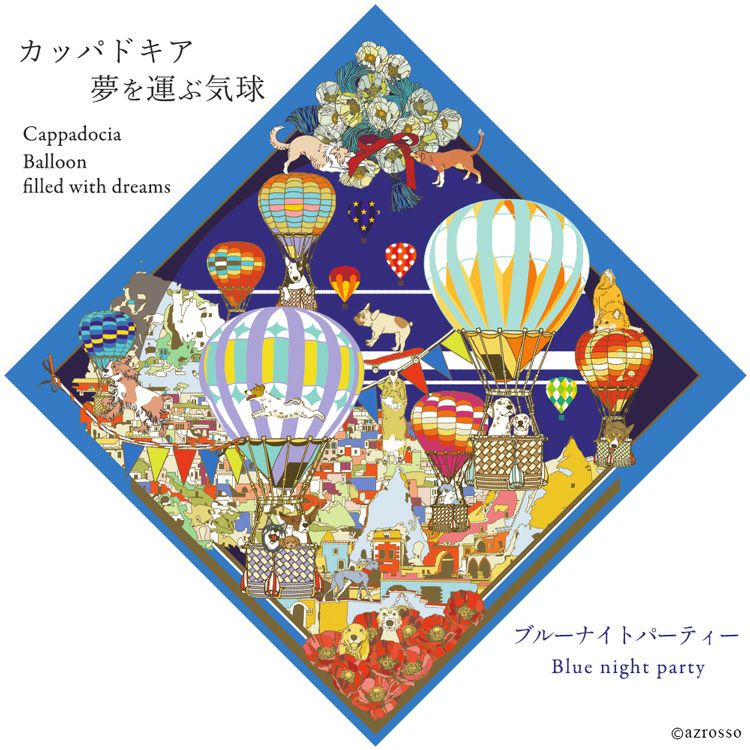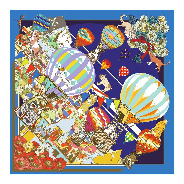 カッパドキア ミニスカーフ 日本製 コットン 45cm 正方形 横浜スカーフブランドドットワイ 犬と気球