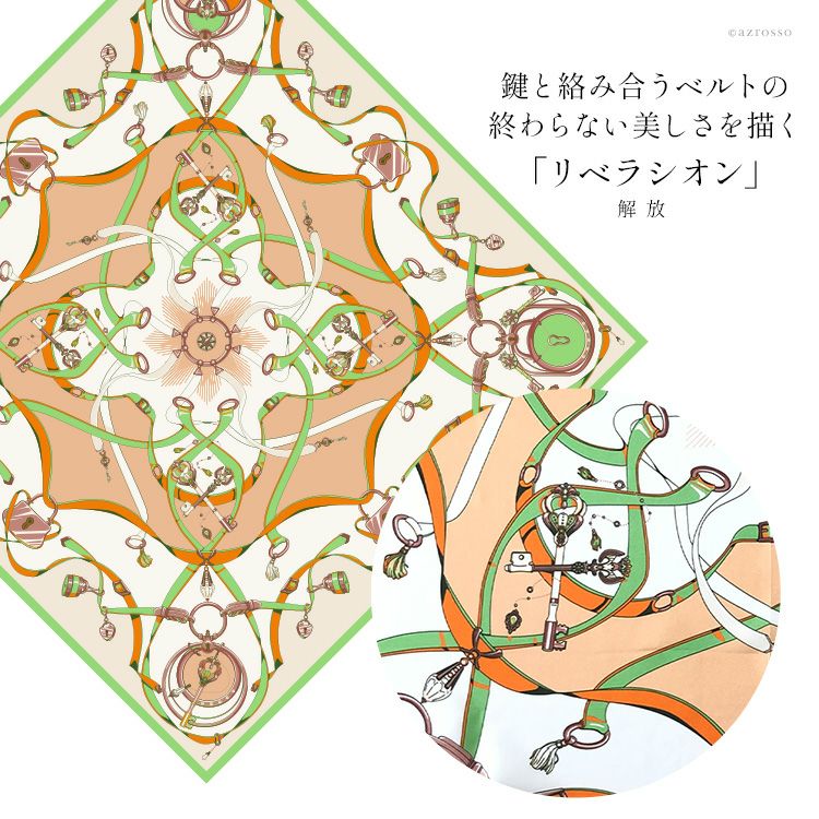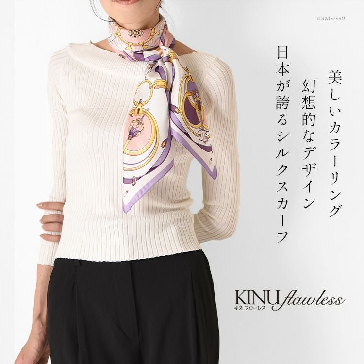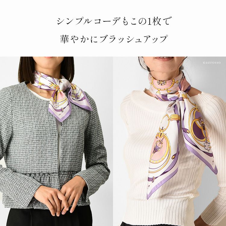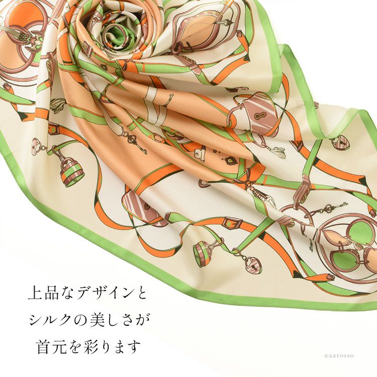 スカーフ シルク 100 日本製 大判 ブランド 正方形 横浜 スカーフ レディース セレモニー 卒業式 入学式 フォーマル シルクツイル ベルト柄 おしゃれ