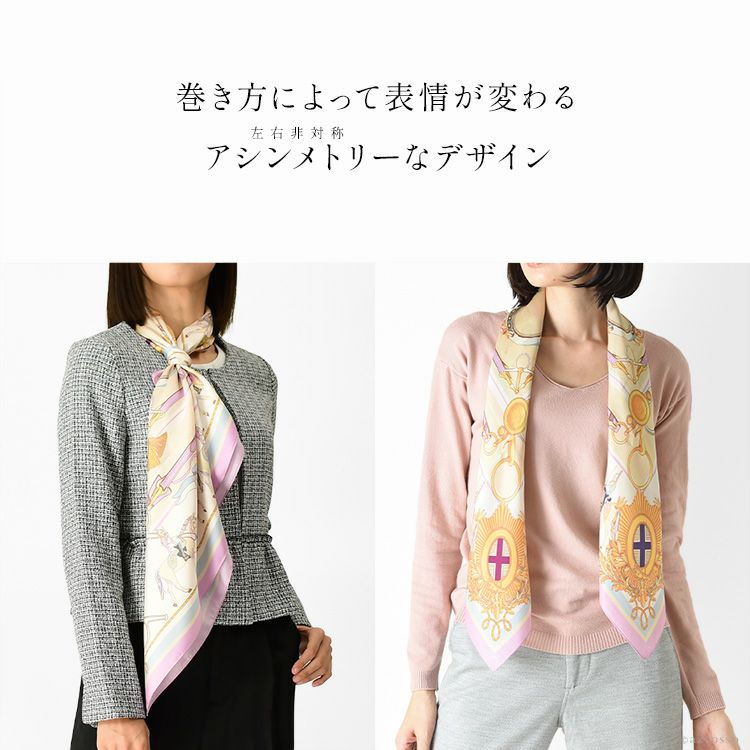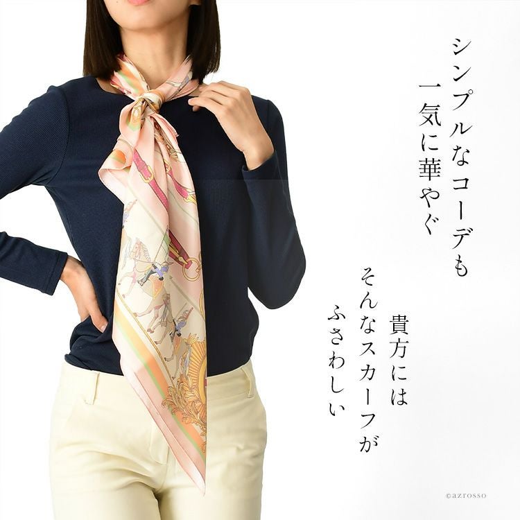 スカーフ シルク 100 日本製 大判 ブランド 正方形 横浜 スカーフ レディース エルメス柄 馬具柄 セレモニー 卒業式 入学式 フォーマル シルクツイル