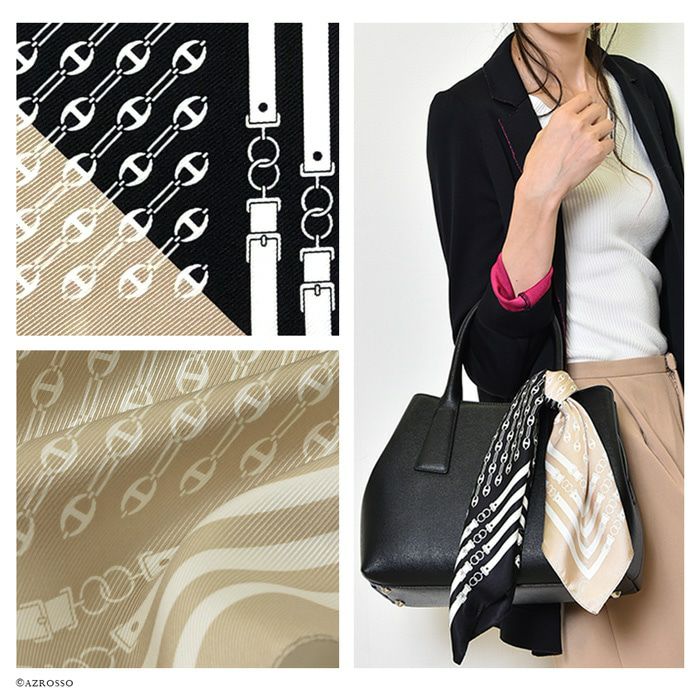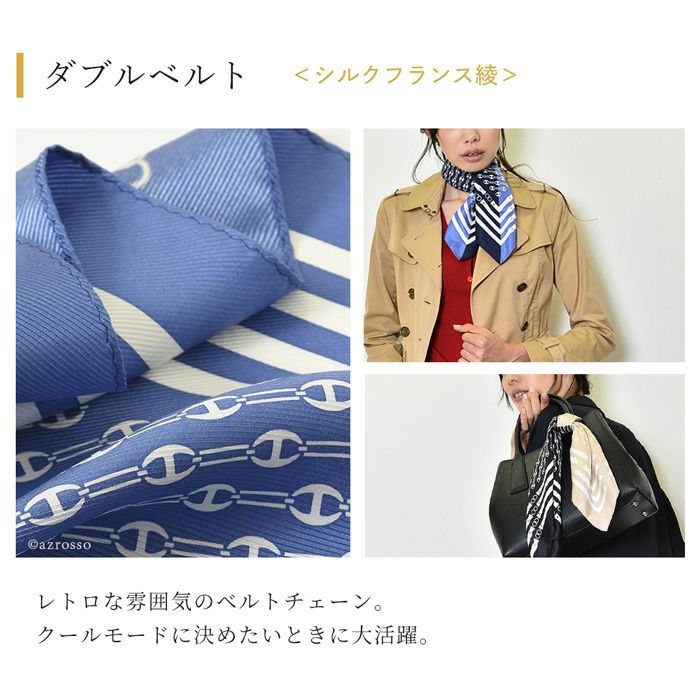 手捺染で仕上げたスカーフは肌触りと光沢を含む上質な仕上がりになります。また、裏表の区別がつきにくいところも特徴です。