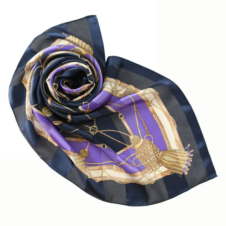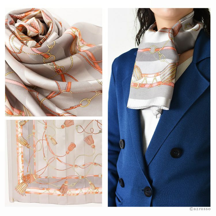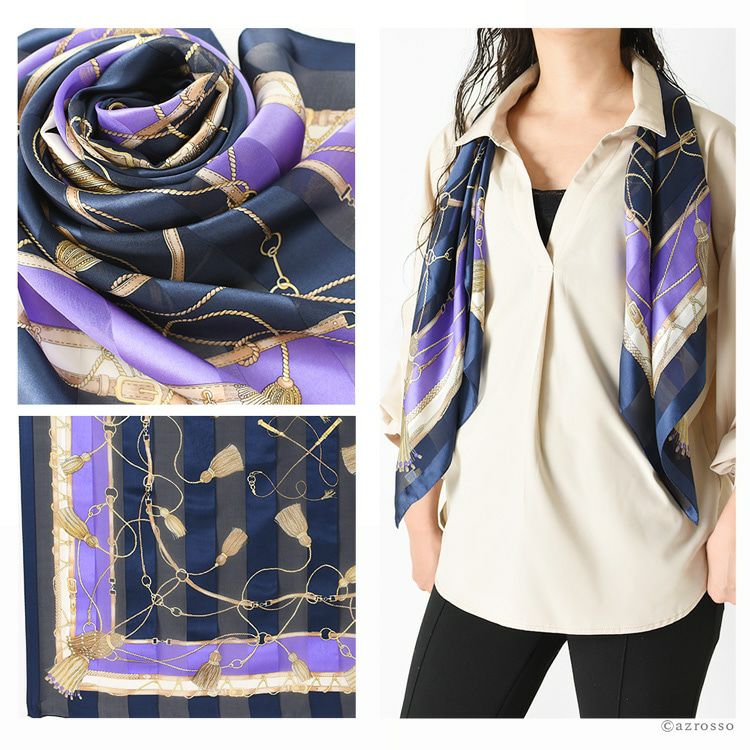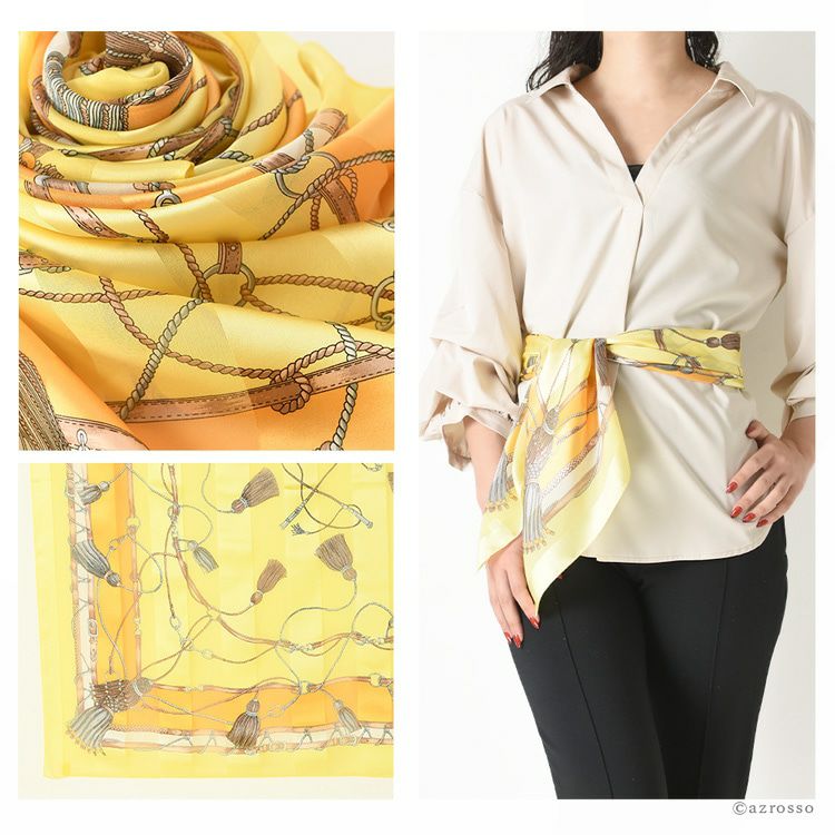 シルク スカーフ 大判 正方形 90 日本製 シルク100% レディース タッセル 黄色 ベージュ グレー ネイビー 紺 紫 サテン ストライプ エルメス 柄 馬具柄 ベルト 横浜スカーフ おしゃれ プレゼント