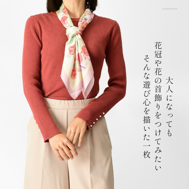 スカーフ シルク 100 日本製 大判 ブランド 正方形 横浜 スカーフ レディース セレモニー 卒業式 入学式 フォーマル シルクツイル 花柄 おしゃれ
