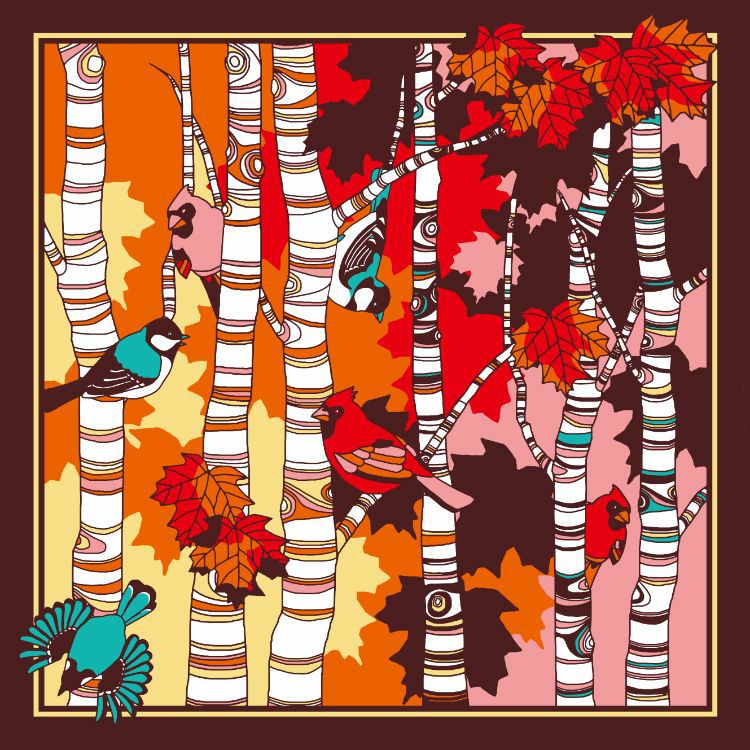 シルクスカーフ 日本製 大判 90×90 シルク100 正方形 高級スカーフ ブランド 横浜スカーフ シルクツイル プレゼント ギフト レディース 鳥 柄