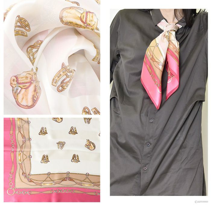 馬具 馬蹄 横浜スカーフ シルク エルメス柄 日本製 シルクスカーフ 大判 スカーフ 正方形 シルク100% 90×90cm