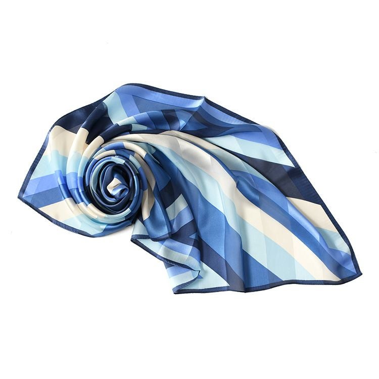 チャンスチャージUP シルク サテン ストライプ 幾何学模様柄 シルク100% 90cm×90cm 日本製 横浜スカーフ【通常ネコポス配送】