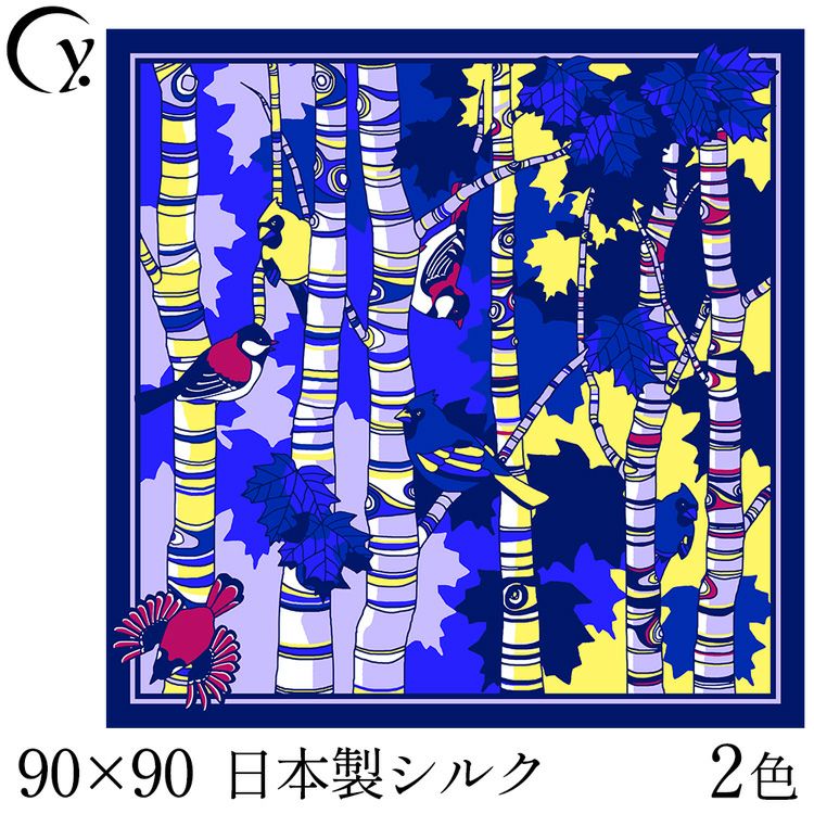 シルクスカーフ 日本製 大判 90×90 シルク100 正方形 高級スカーフ ブランド 横浜スカーフ シルクツイル プレゼント ギフト レディース 鳥 柄