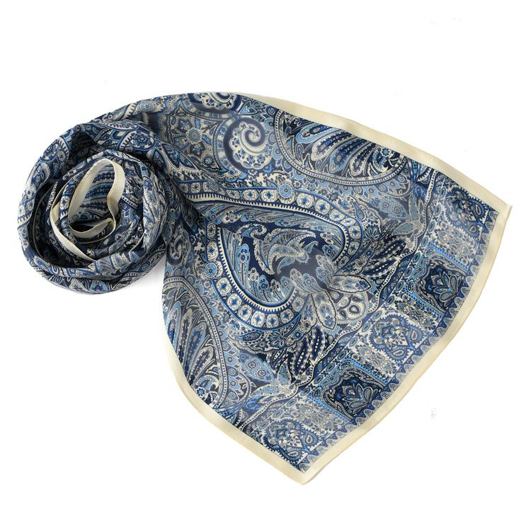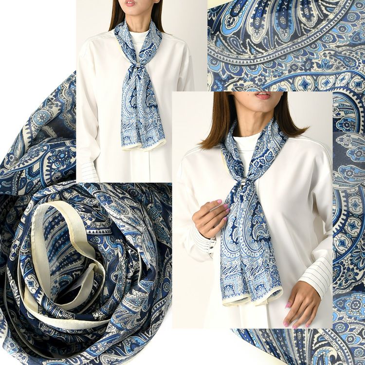 インディアナエトロ シルク サテン ストライプ ペルシャ柄 シルク100% 30cm×130cm 日本製 横浜スカーフ【通常ネコポス配送】