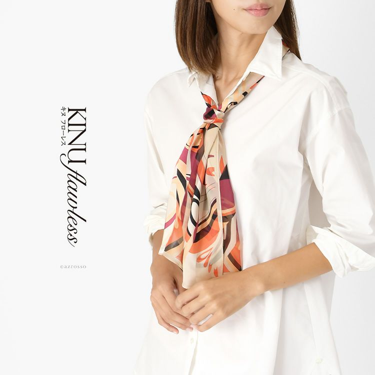 スイング シルク サテン ストライプ 幾何学模様柄 シルク100% 30cm×130cm 日本製 横浜スカーフ【通常ネコポス配送】