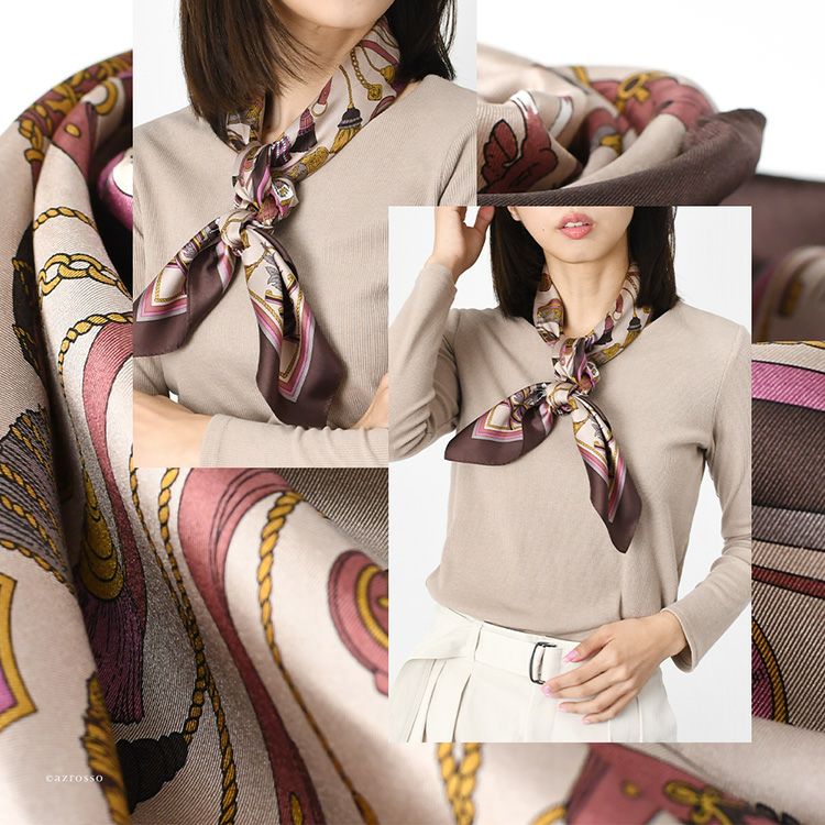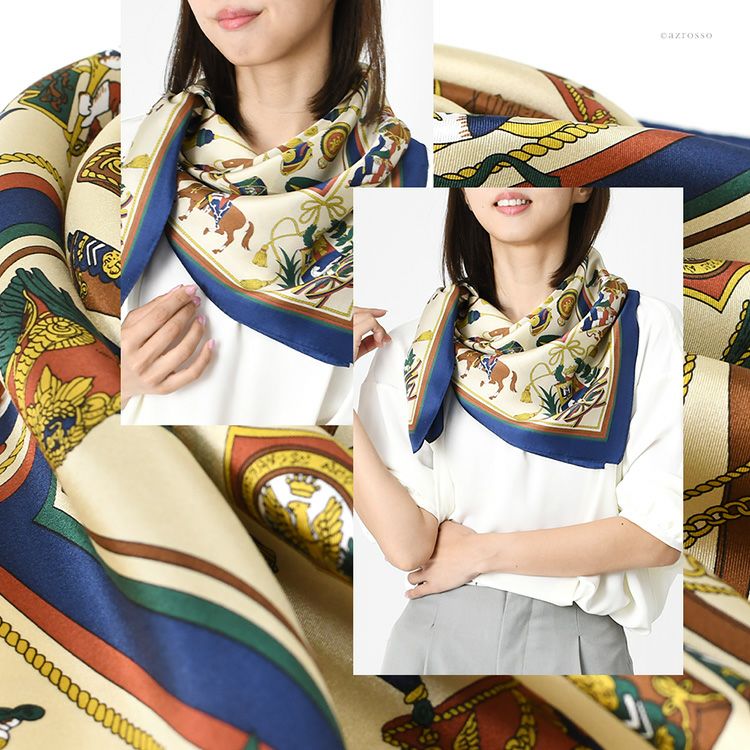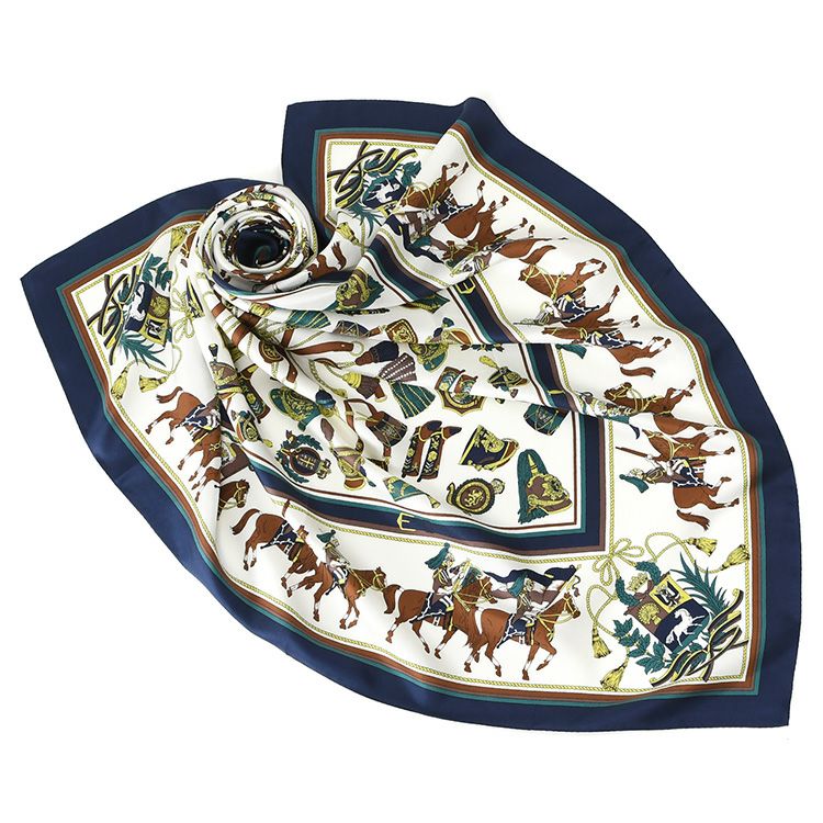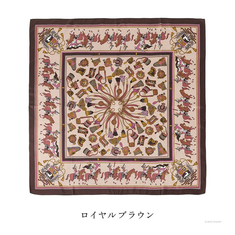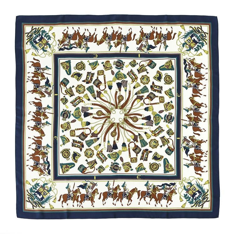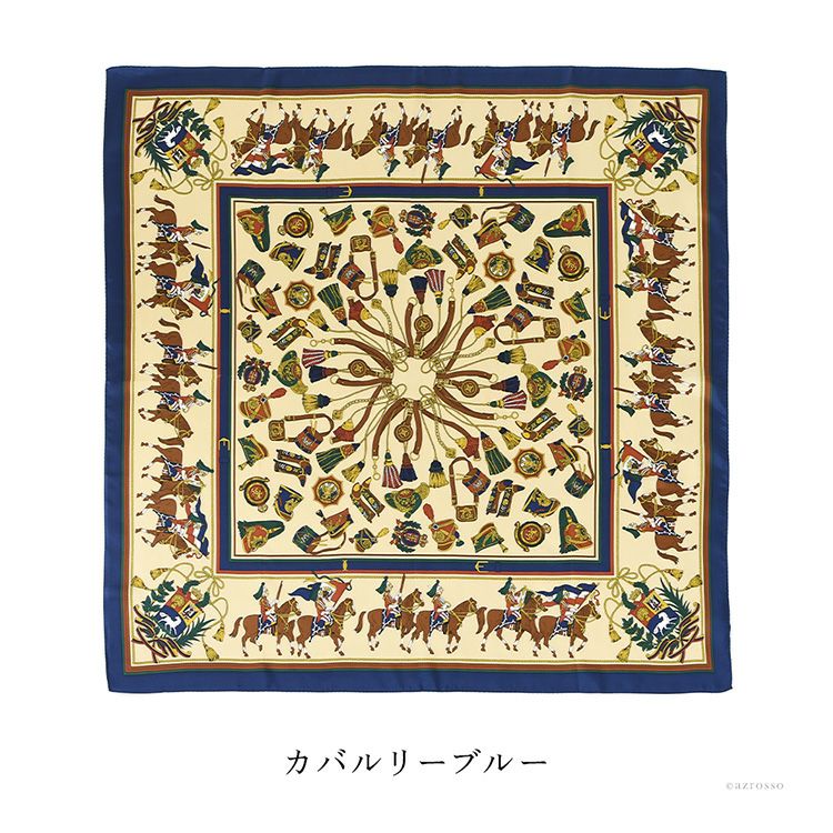 騎兵マーチ シルク ツイル スカーフ エルメス柄 馬具柄 シルク100% 90cm×90cm 正方形 日本製 横浜スカーフ【通常ネコポス配送】