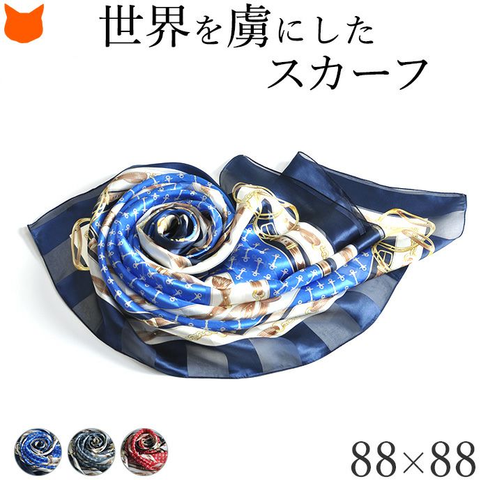 シルク100 スカーフ ライディングビット 大判 シルクサテンストライプ ベルト 馬具 柄 正方形 横浜スカーフ シルク100% 日本製 巻き方や結び方を紹介 結婚式 誕生日 敬老の日 プレゼント 彼女 女性 妻