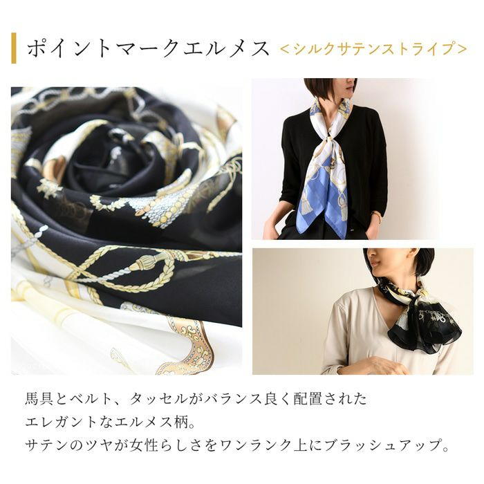 シルク スカーフ 大判 サテン エルメス柄 馬具柄 90x90 正方形 日本製 ブランド キヌフローレス