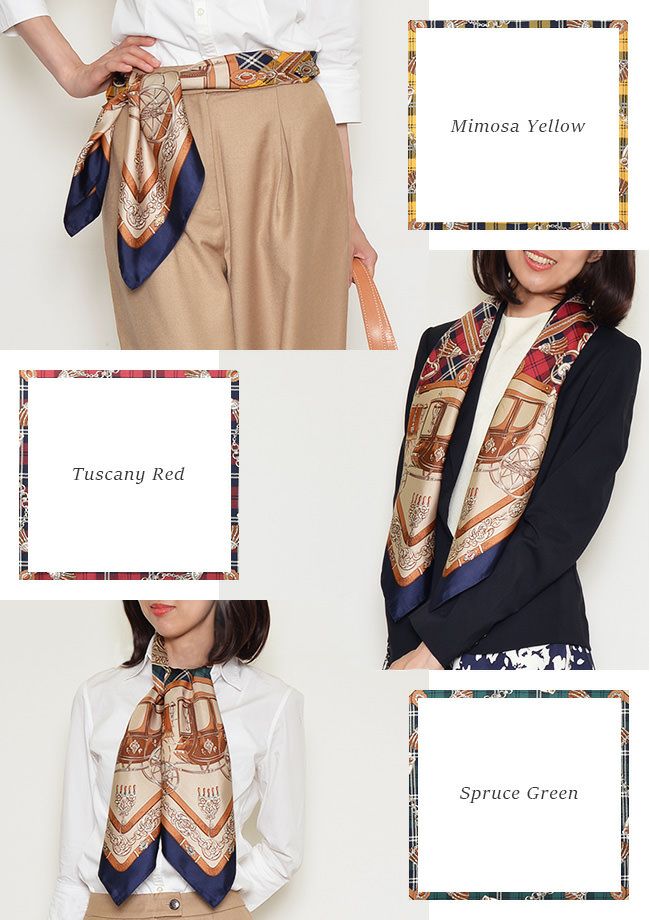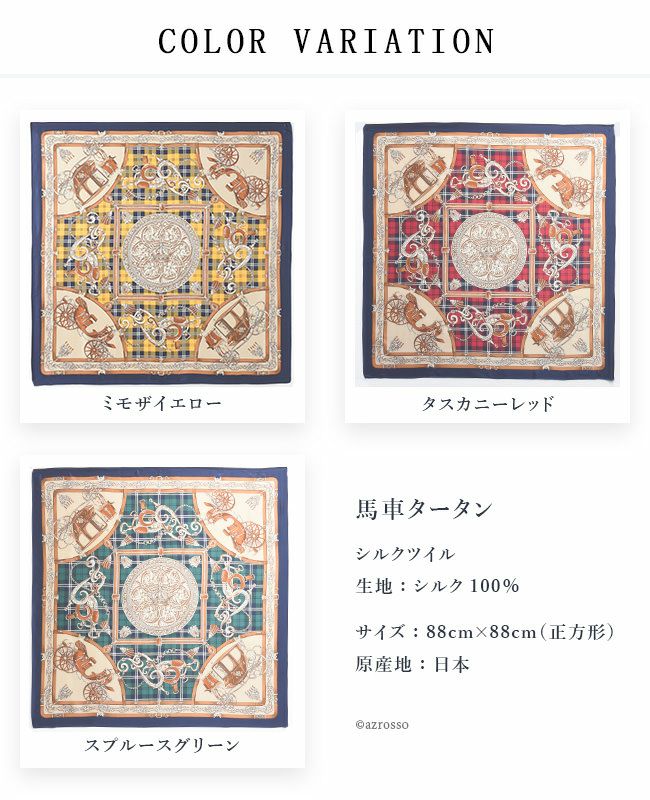 シルク スカーフ 大判 ツイル エルメス柄xタータンチェック 88x88 正方形 日本製 ブランド