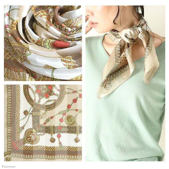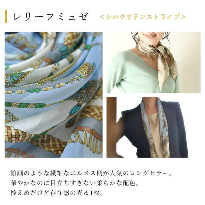 絵画のような繊細なエルメス柄が人気のロングセラー。華やかなのに目立ちすぎない柔らかな配色。控えめだけど存在感の光る1枚。
