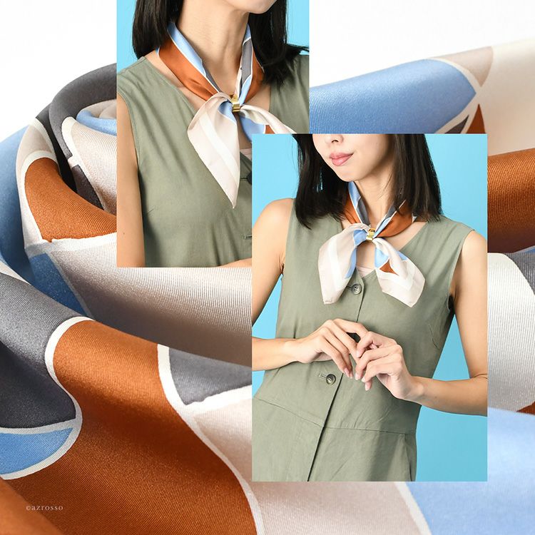 スーツやジャケット、シャツにまとうと、否が応でも「デキる女」風に仕上がってしまう幾何学柄。ホテルの受付の女性が幾何学柄のスカーフを巻いているのをよく見かけます。