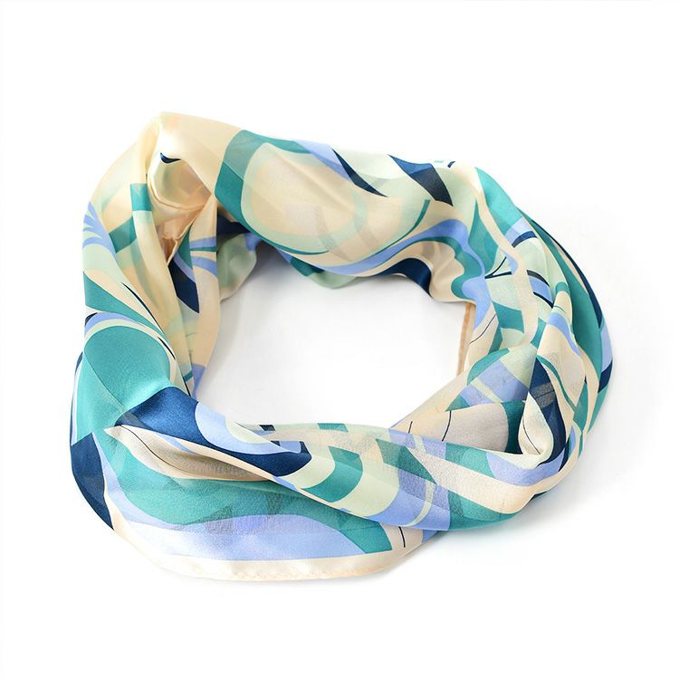 簡単装着できて、気になる首元をエレガントに隠してくれるループタイプのシルクスカーフです。
