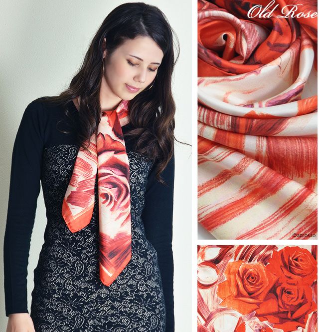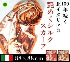 シルク 100 スカーフ 花柄 正方形 88x88 大判 シルクツイル フレイ コモ巻き方 結び方 バッグ 帽子 ベルト レッド オレンジ クリスマス プレゼント 誕生日 結婚式 二次会 謝恩会 パーティ 秋 冬 薔薇 バラ ローズ frey como 送料無料