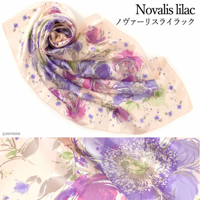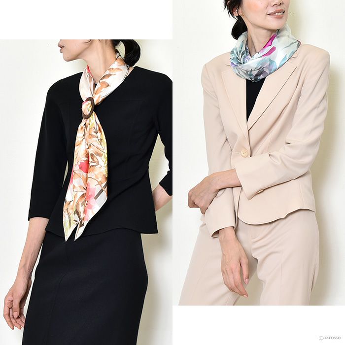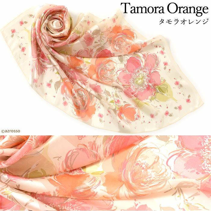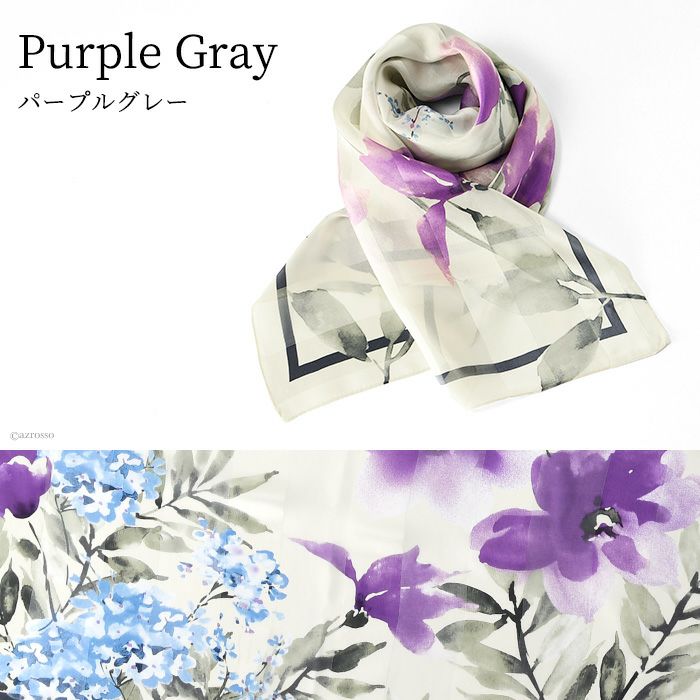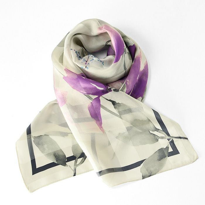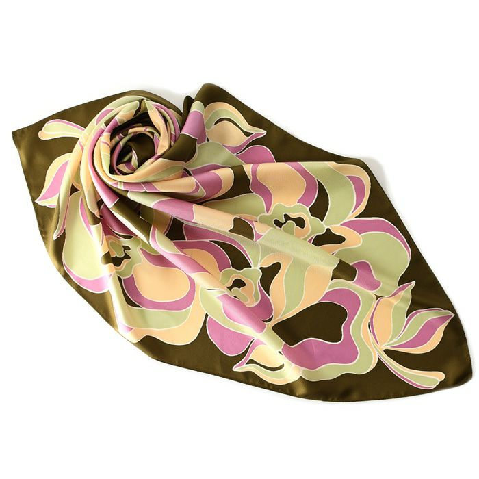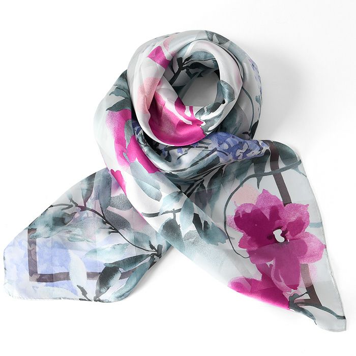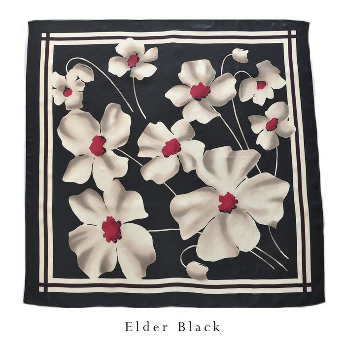 また、花柄のシルクスカーフは、若い女性から年配の女性まで幅広く人気で、さらに着こなしやすい柄。ですから、母の日や敬老の日のプレゼントにも汎用性が高く好評。母娘兼用でお使いになられている方も少なく有りません。