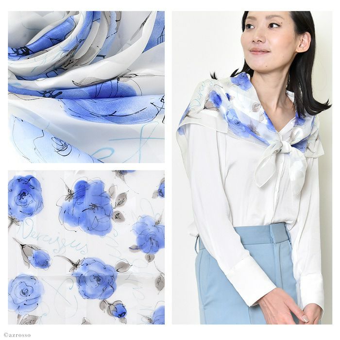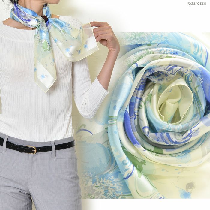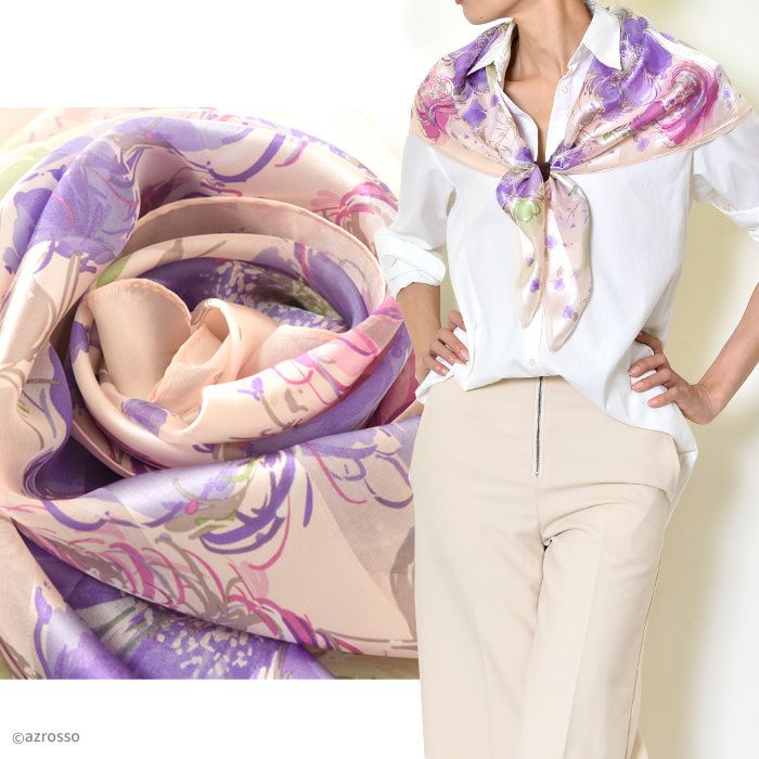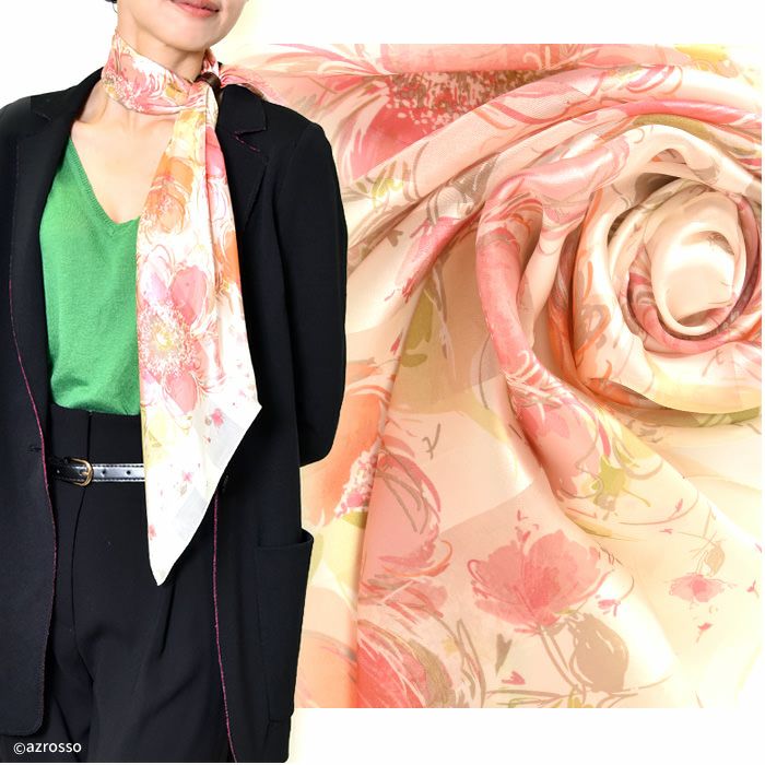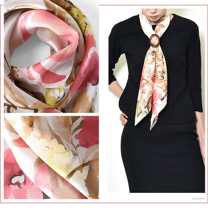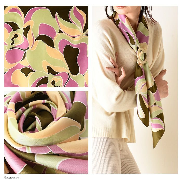 シルク100% イタリア製 シルクスカーフ 巻き方や結び方を紹介 敬老の日 母の日 誕生日 プレゼント 薔薇 バラ ローズ freycomo
