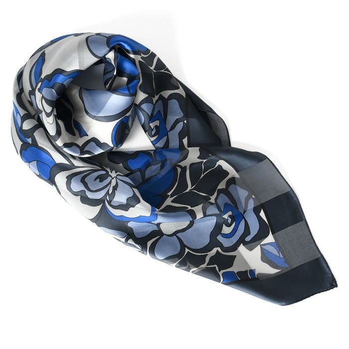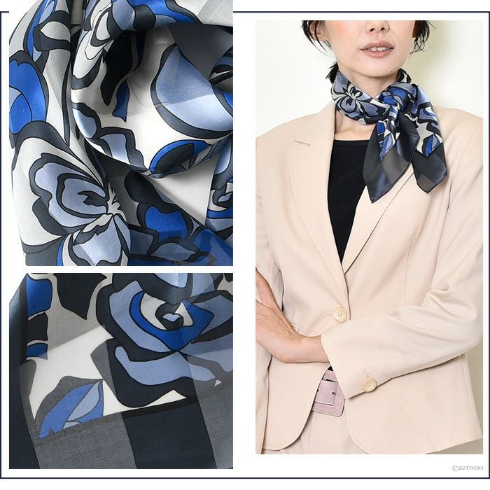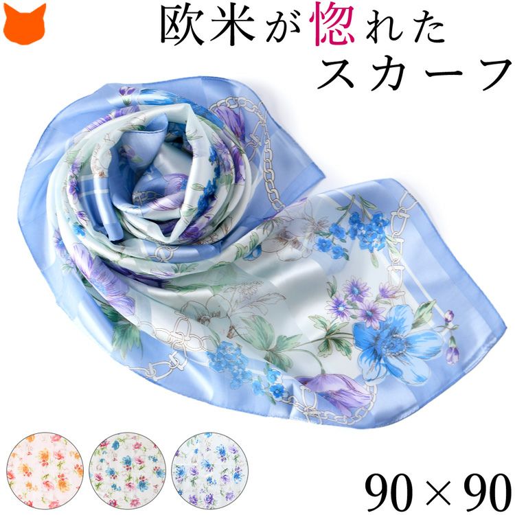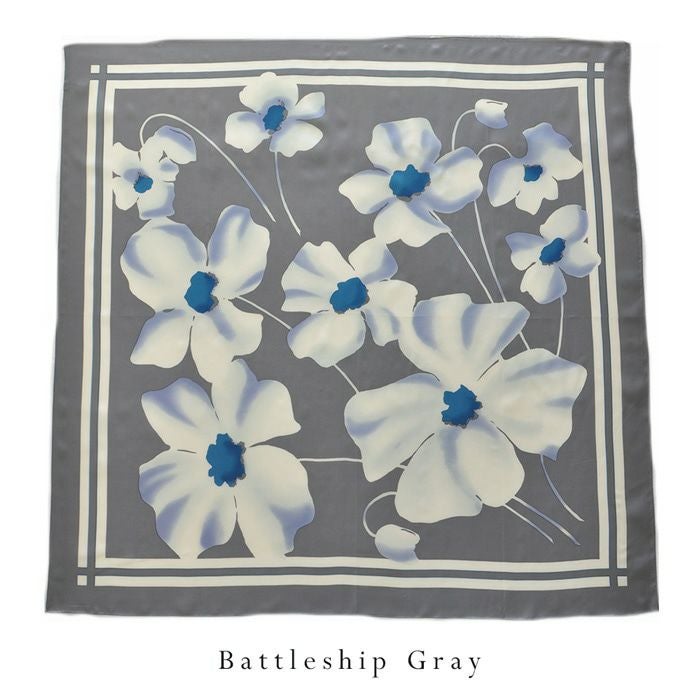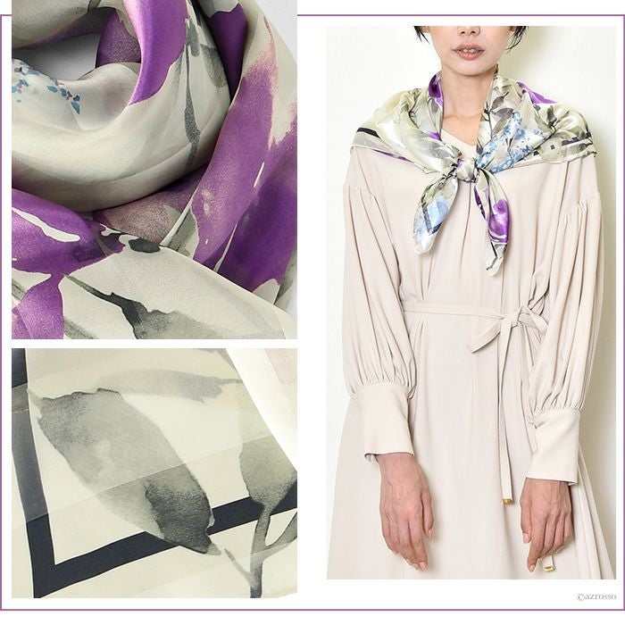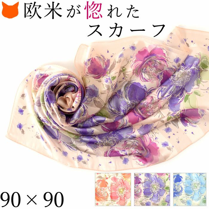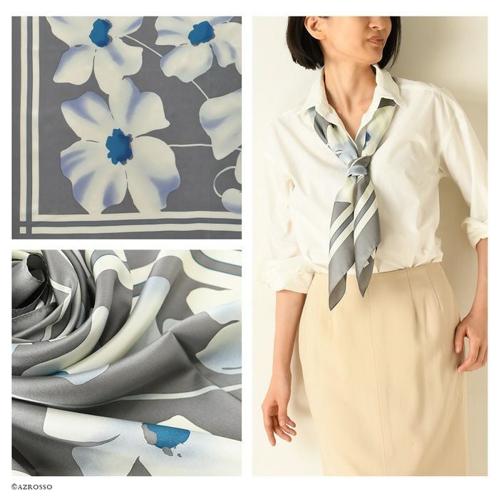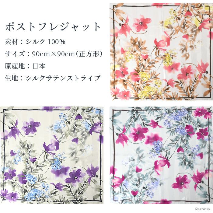 90×90|キヌフローレス(KINU flawless) の濃淡の色合いが美しい花柄のシルクスカーフ。母の日、敬老の日、女性への誕生日プレゼントにも ポストフレジャット 横浜スカーフ シルクサテンストライプ 花柄 日本製 シルクスカーフ 大判 スカーフ 正方形 シルク100% 90×90cm