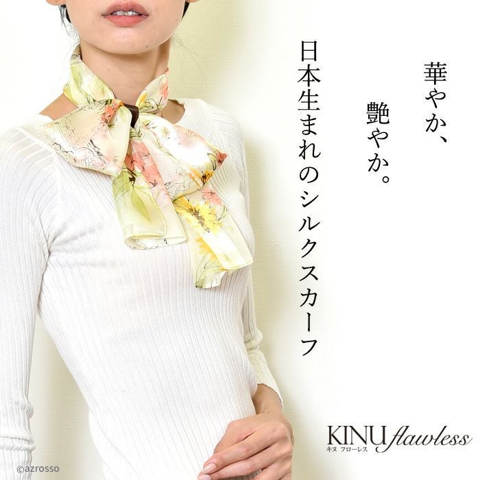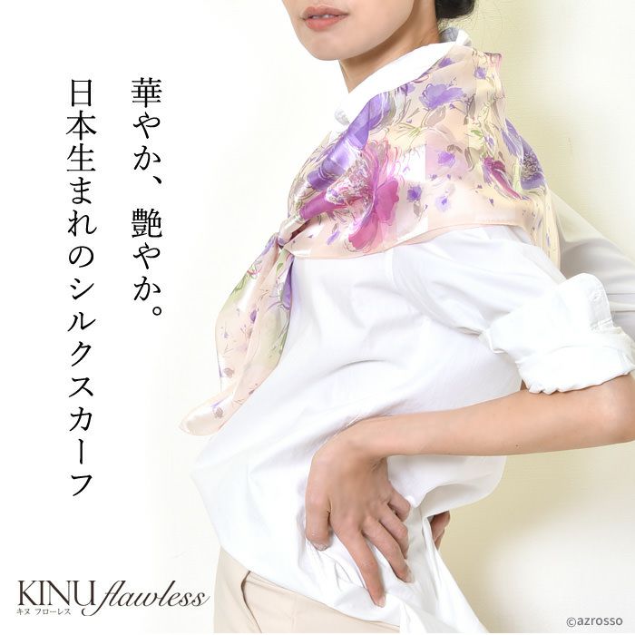 世界に誇る横浜スカーフブランドKINU flawless(キヌ フローレス)の花柄シルクスカーフ「ベルフルール」。誕生日 敬老の日ギフトにもおすすめの正方形スカーフ ベルフルール シルク シフォン 花柄 シルク100% 55cm×55cm 日本製 横浜スカーフ【通常ネコポス配送】