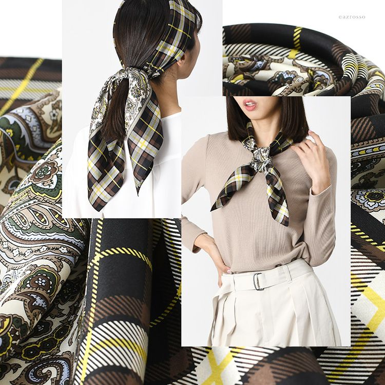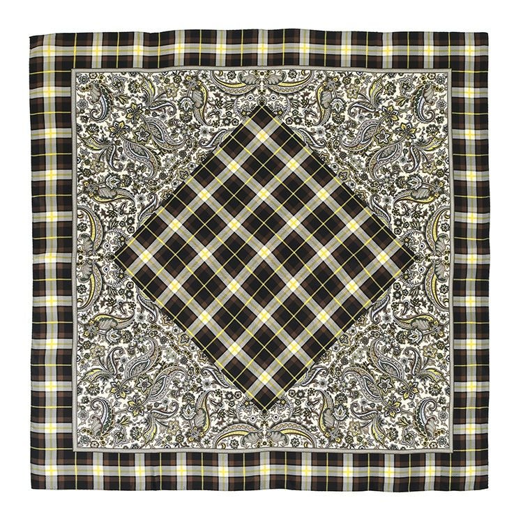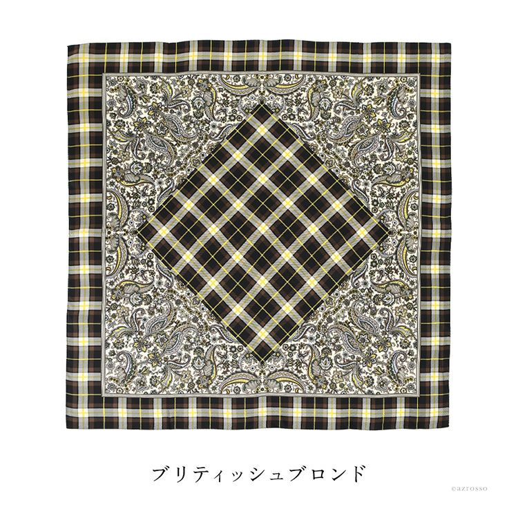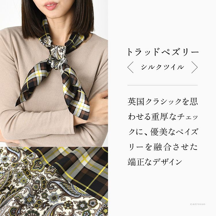トラッドペズリー シルク ツイル スカーフ ペイズリー柄 チェック柄 シルク100% 90cm×90cm 正方形 日本製 横浜スカーフ【通常ネコポス配送】