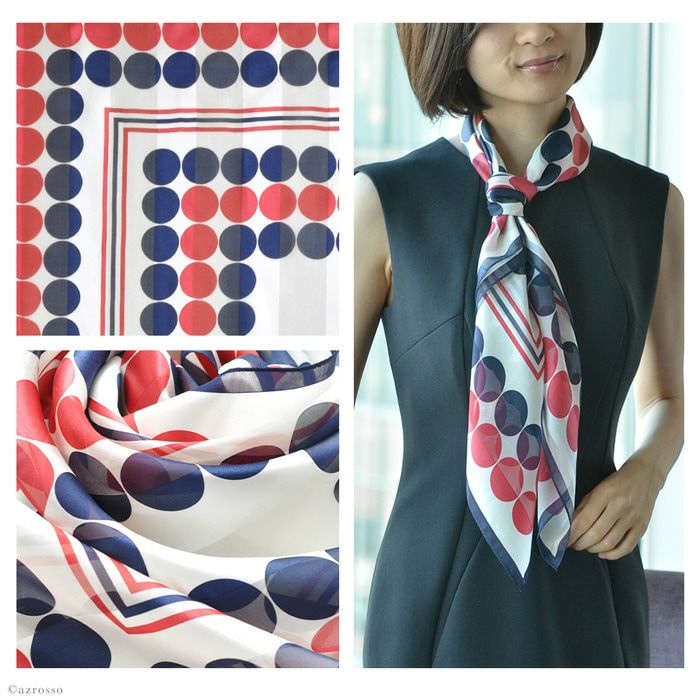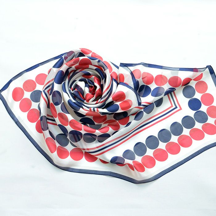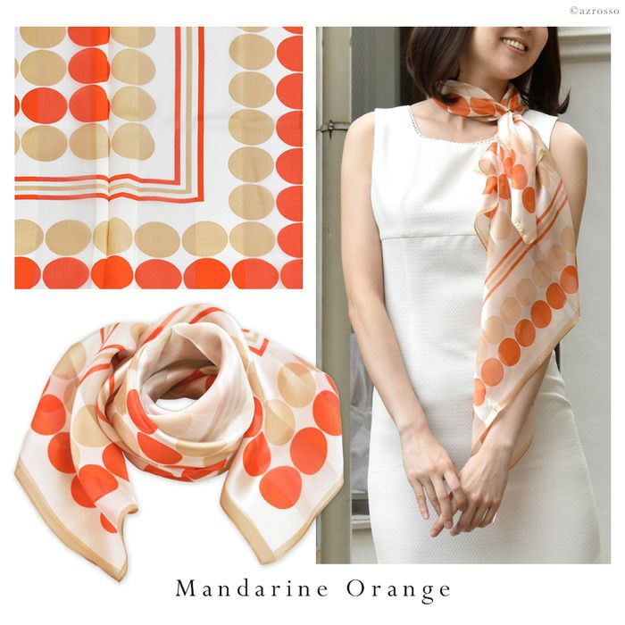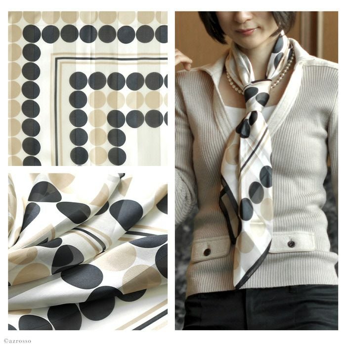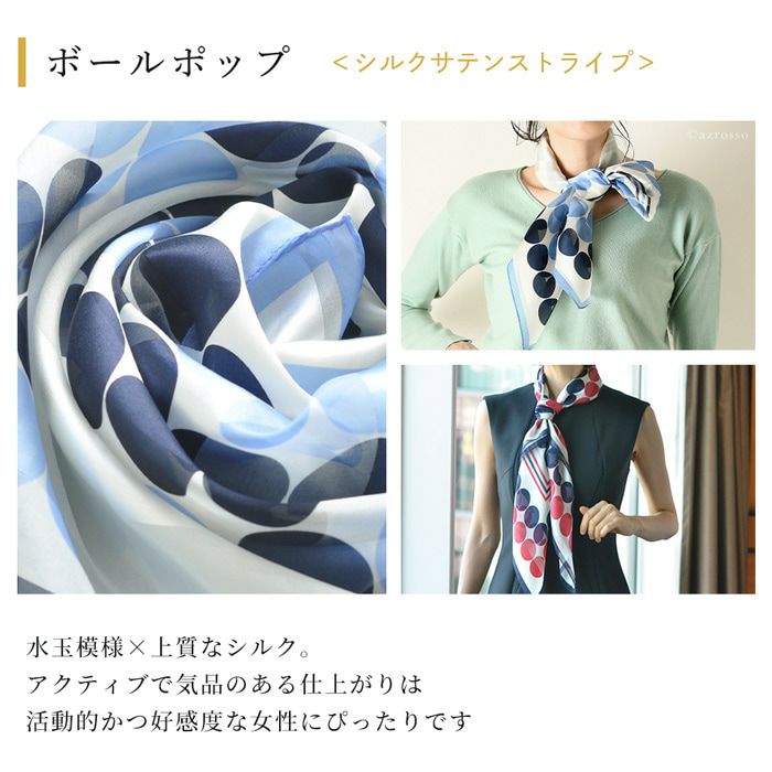 ボールポップ シルク100% サテン 横浜スカーフ 日本製 長方形 お洒落な水玉 ドット柄 春夏