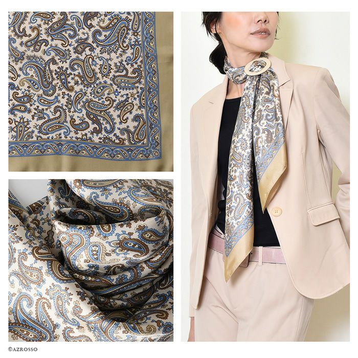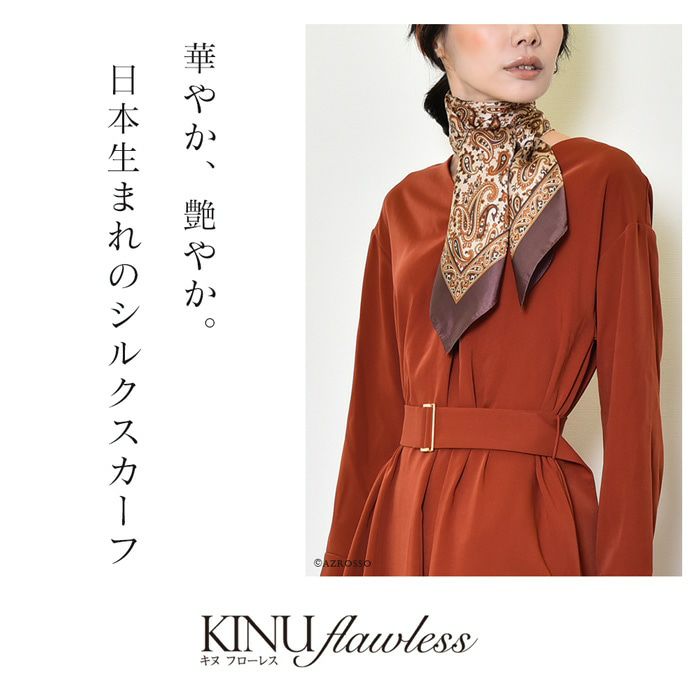 手捺染で仕上げたスカーフは肌触りと光沢を含む上質な仕上がりになります。また、裏表の区別がつきにくいところも特徴です。